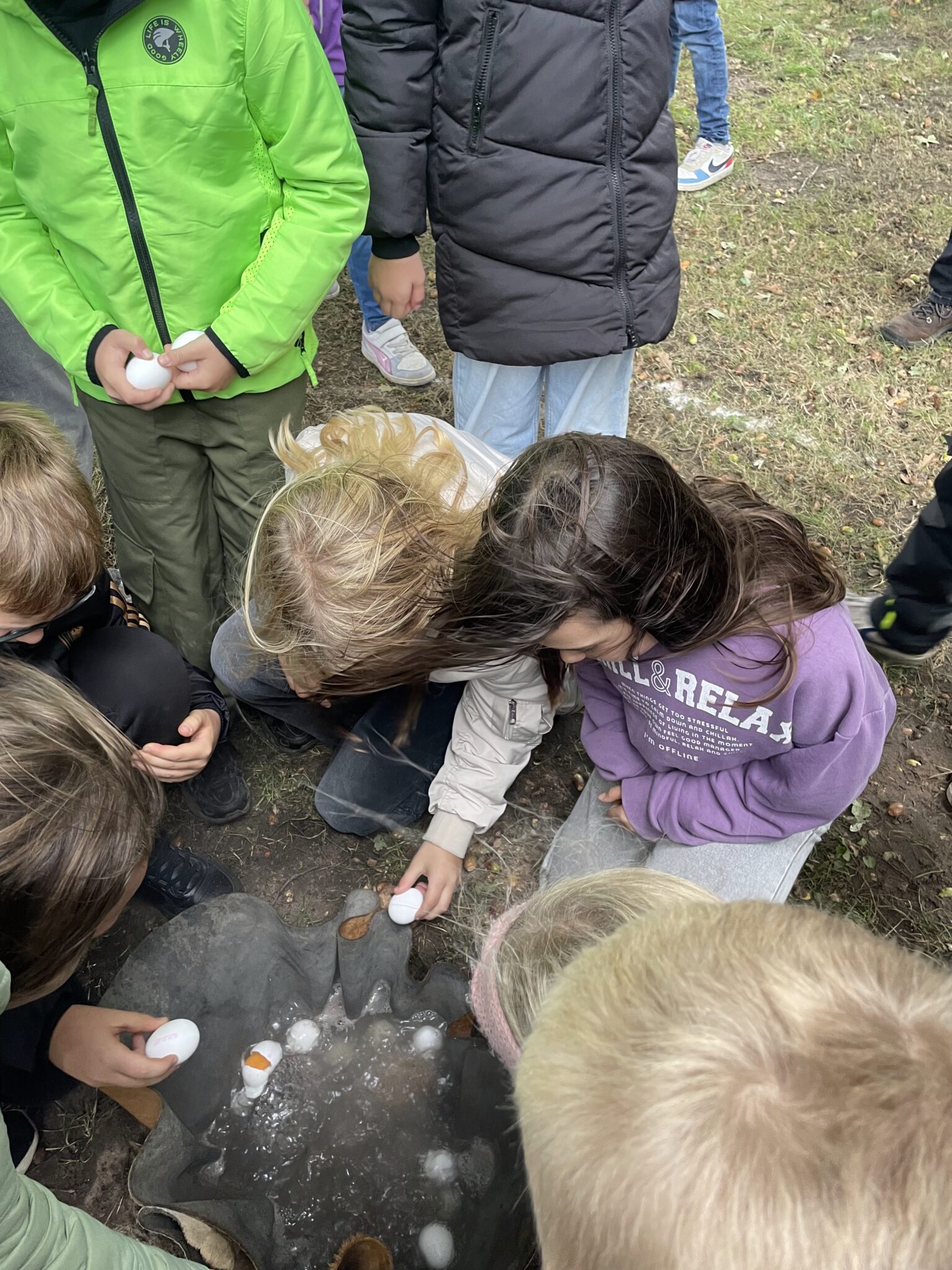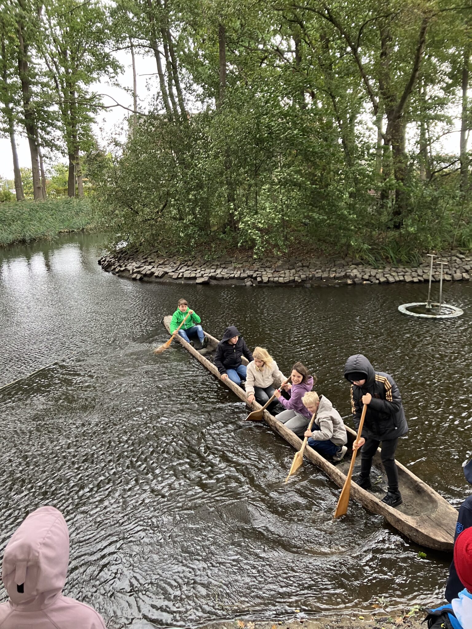 Begleitet von den erfahrenen Archäologen Thorsten Helmerking und Dr. Hans Joachim Behnke lernten die Schülerinnen und Schüler, wie unsere Vorfahren lebten: Sie errichteten ein Zelt aus Fellen, machten Feuer ohne moderne Hilfsmittel, kochten Eier in einem selbst gegrabenen Erdloch und erfuhren viel über das Leben als Jägerin und Sammler. Besonders aufregend war – wie jedes Jahr – die Fahrt mit dem Einbaum auf dem Entenfang, bei der es auch mal nass werden durfte.