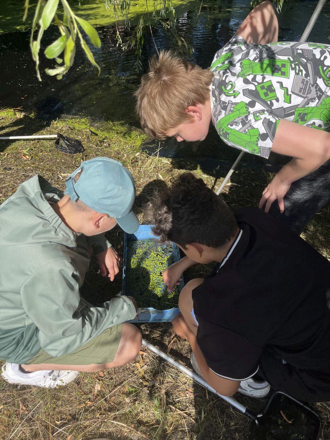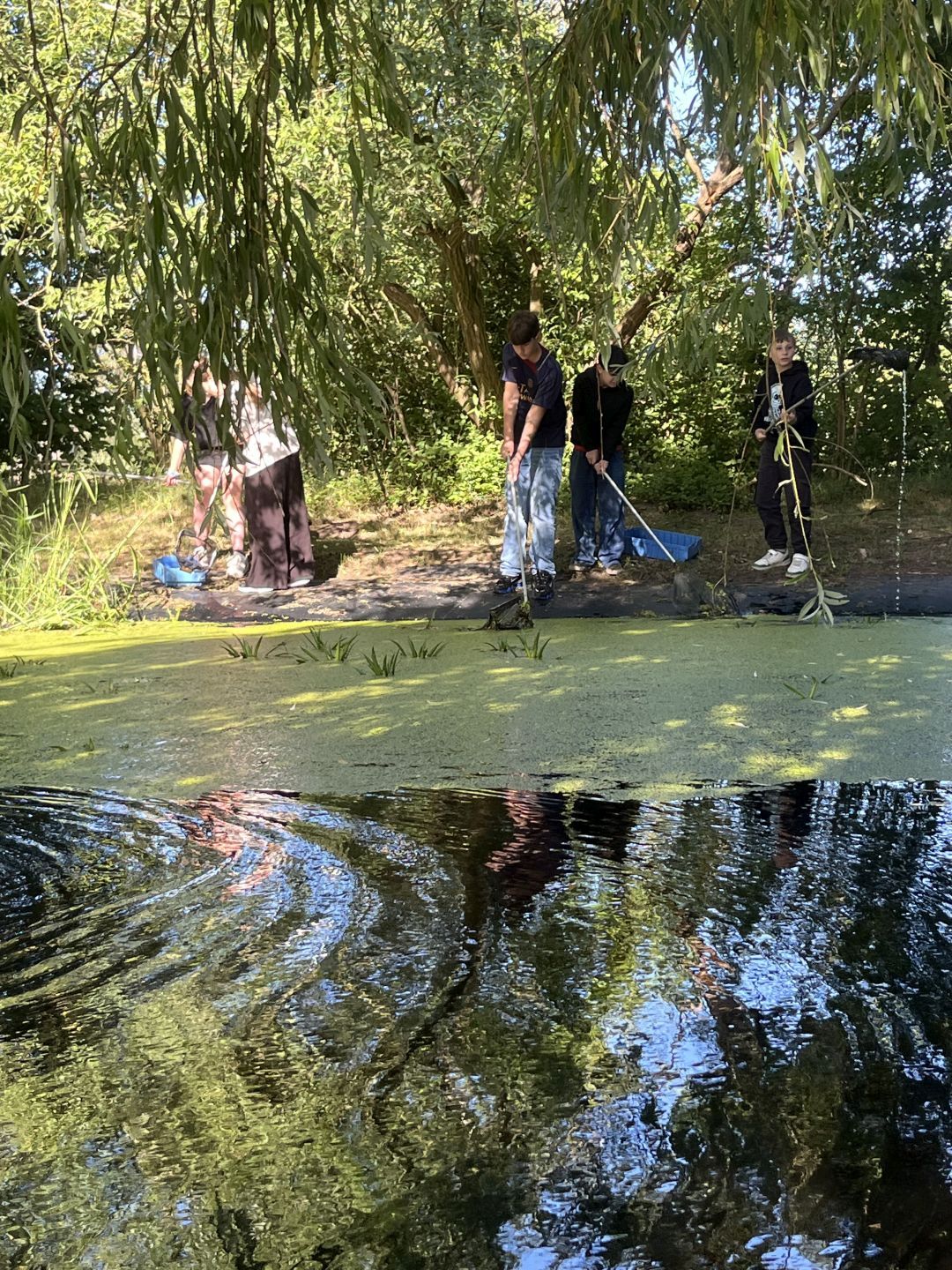 Die fünften Klassen beschäftigten sich mit Mülltrennung und Upcycling. Im Umwelt- und Erlebniszentrum in Barnstorf konnten sie außerdem beim Keschern die Vielfalt der heimischen Gewässer entdecken.
