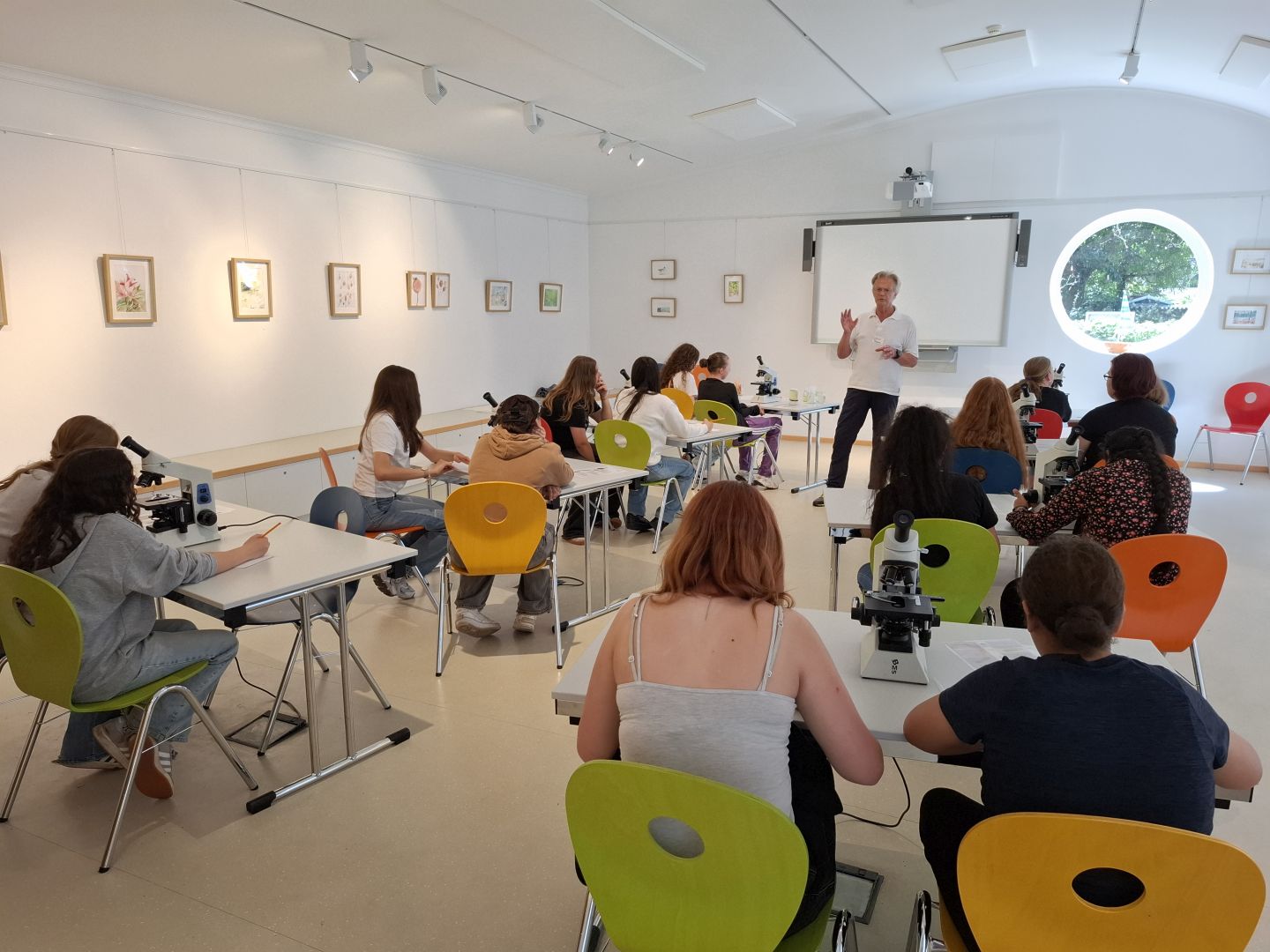 Die siebten Klassen forschten im Regionalen Umweltbildungszentrum am Dümmer-Museum. Dort untersuchten sie Wasserproben unter dem Mikroskop und lernten das Ökosystem Dümmer kennen.