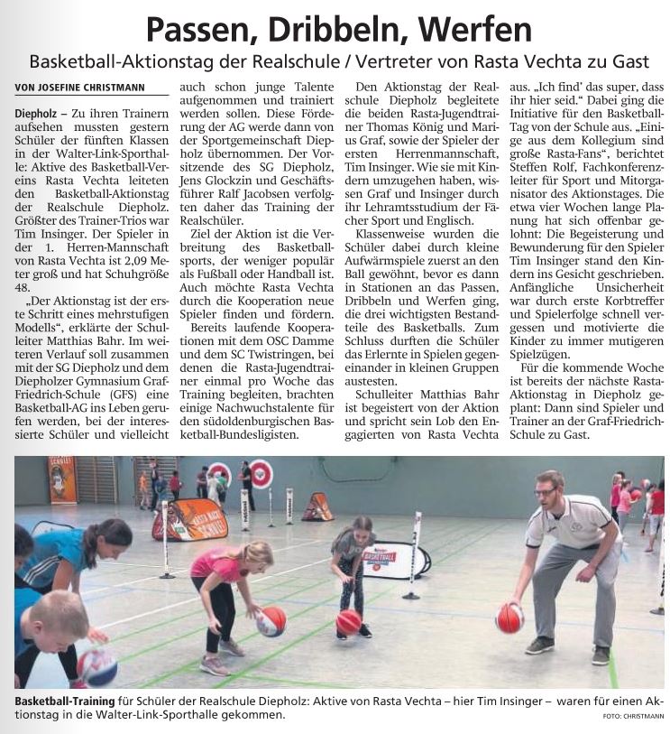 Basketball-Aktionstag der Realschule / Vertreter von Rasta Vechta zu Gast