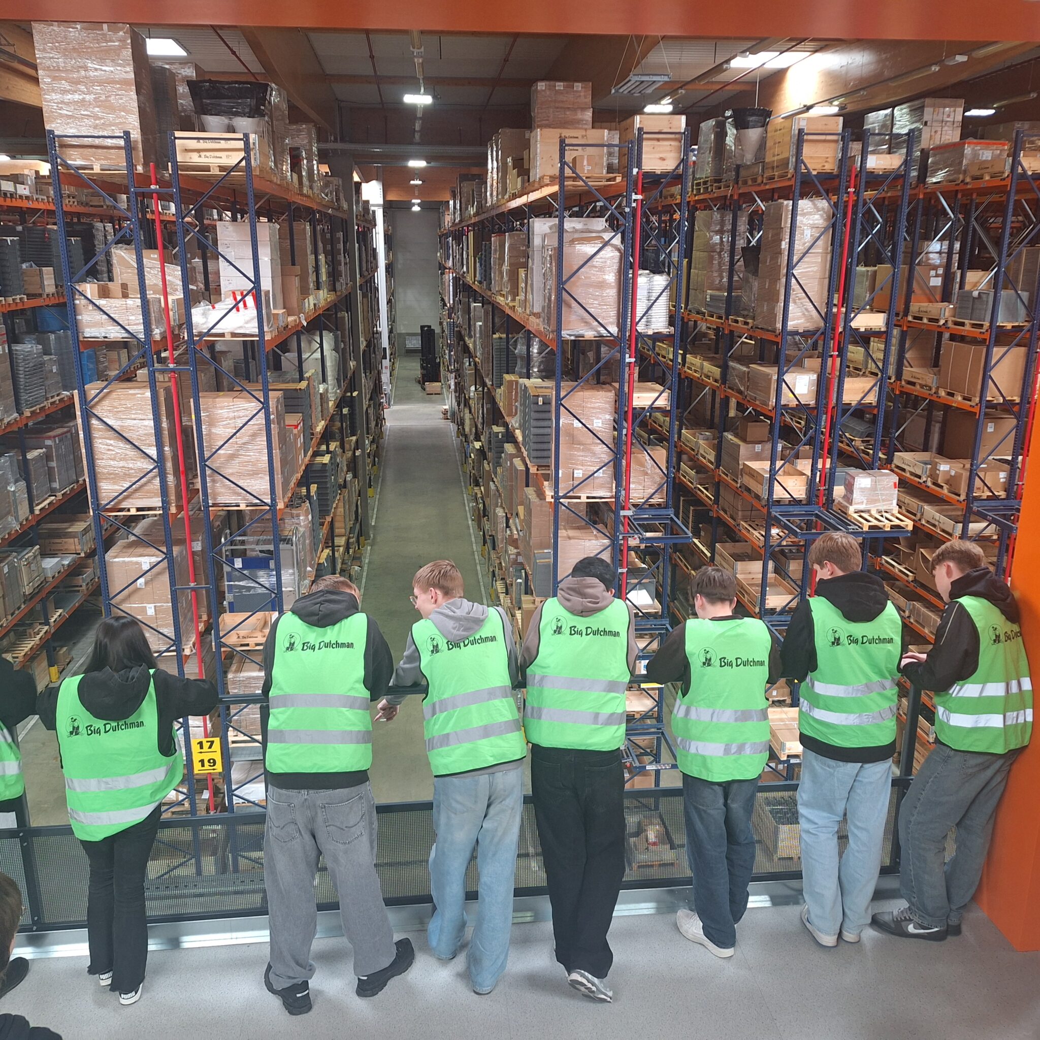 Im Anschluss folgte eine spannende Betriebsbesichtigung. Besonders beeindruckend fanden die Jugendlichen das moderne Hochregallager sowie das ansprechend gestaltete Betriebsrestaurant.