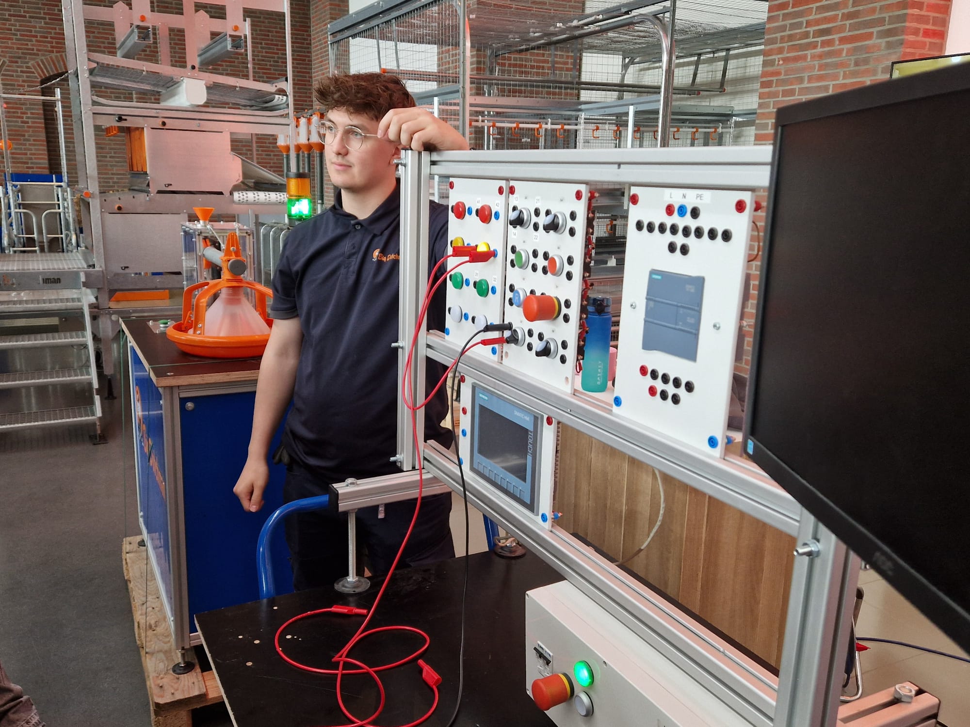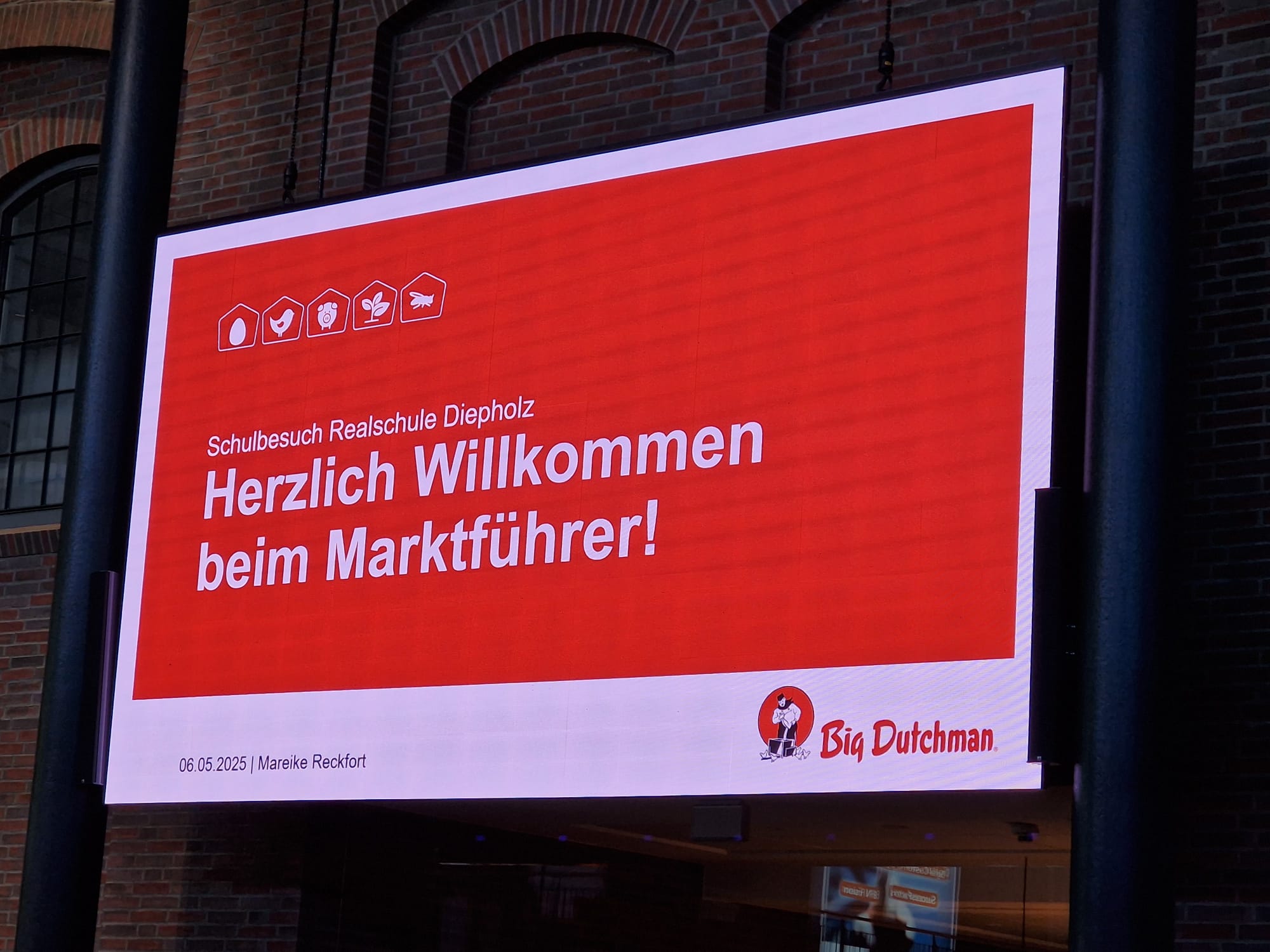 Nach der Ankunft bei Big Dutchman erhielten die Schülerinnen und Schüler zunächst eine informative Einführung in das Unternehmen. Dabei wurden viele Fragen beantwortet: Was produziert Big Dutchman? Wer gründete das Unternehmen? Wie hoch ist der Jahresumsatz? Wie viele Mitarbeiter beschäftigt die Firma weltweit? In welchen Ländern ist Big Dutchman vertreten? Welche Ausbildungsberufe werden angeboten?
