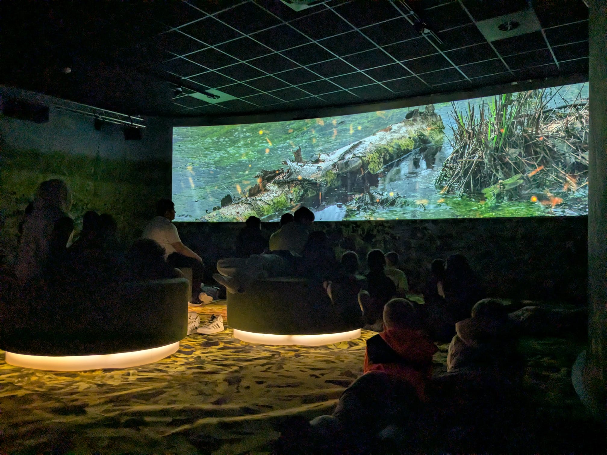 Im Europäischen Fachzentrum für Moor und Klima (EFMK) wurde der Besuch mit einem Film eröffnet, der die Entstehung der Moore anschaulich erklärte. Eine ungewohnt gruselige Erzählerstimme verlieh dem Ganzen eine besondere Note und machte den Film für die Schülerinnen und Schüler zu einem kleinen Erlebnis. Anschließend durchliefen die Gruppen die Ausstellung mit Audioguides und lösten interaktive Quizaufgaben – dabei erfuhren sie viel über die wichtige Rolle der Moore im Klima- und Naturschutz.