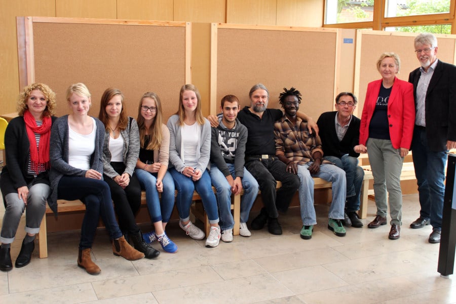 Das Augenmerk der Realschulplanungsgruppe galt neuen Bänken für den Aufenthaltsraum. Für die Verwirklichung der Pläne bot sich eine kooperative Zusammenarbeit in nächster Nähe an: Die Jugendwerkstatt unter Leitung der pädagogischen Ansprechpartnerin Elisabeth Picklapp mit Ausbildungsleiter Walter Helmvoigt und Walter Koopmann als Gesamtleiter.