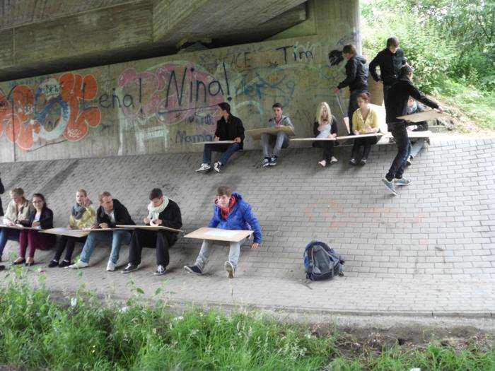 Auch am Mittwoch war das Wetter nicht so toll. Trotzdem konnten die Schüler ihre Zeichnungen draußen anfertigen.