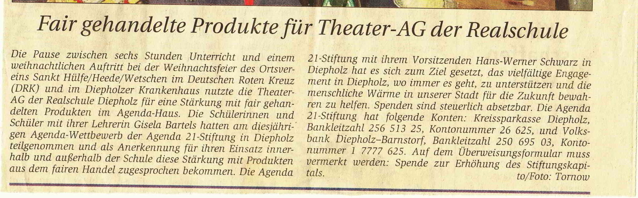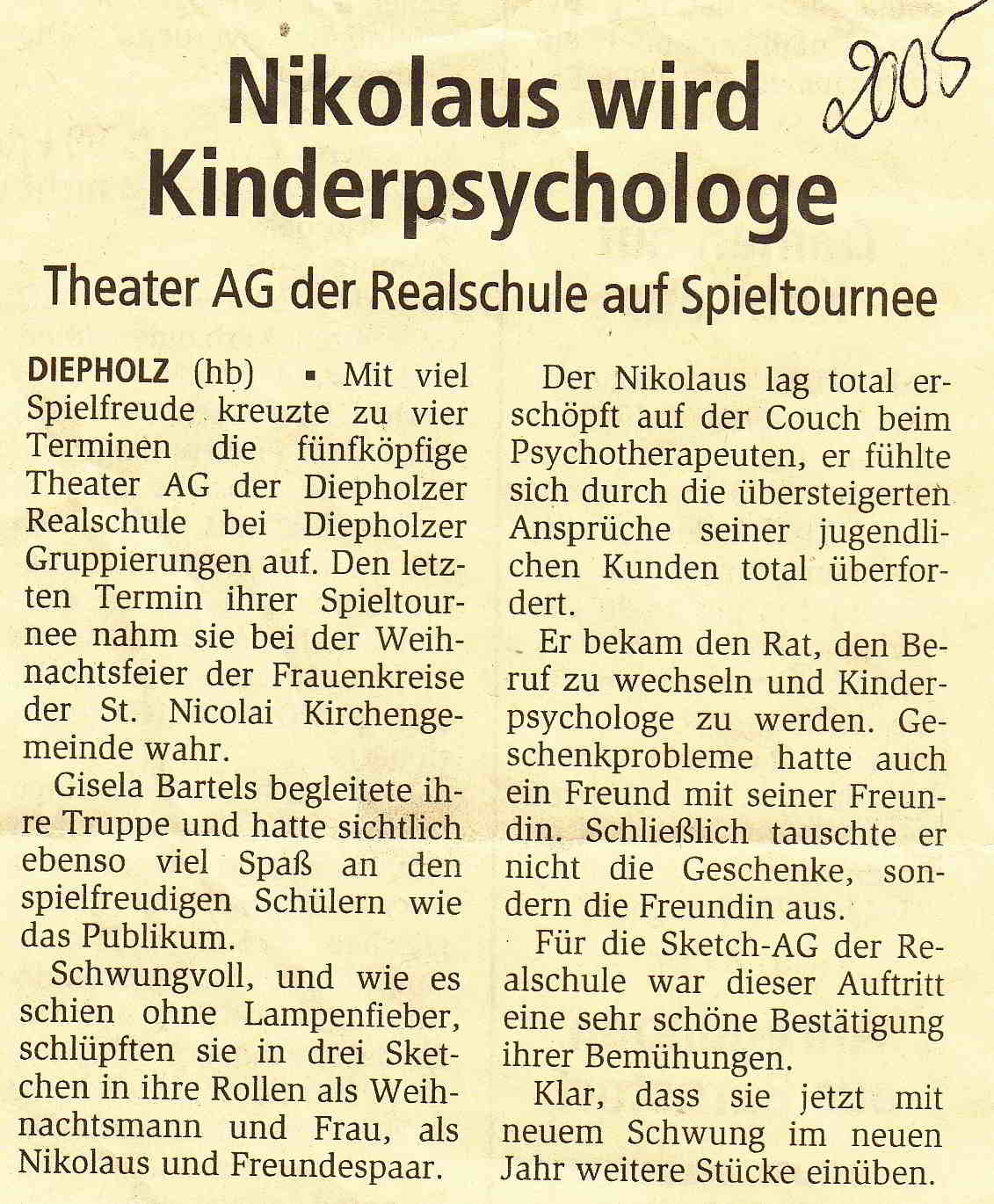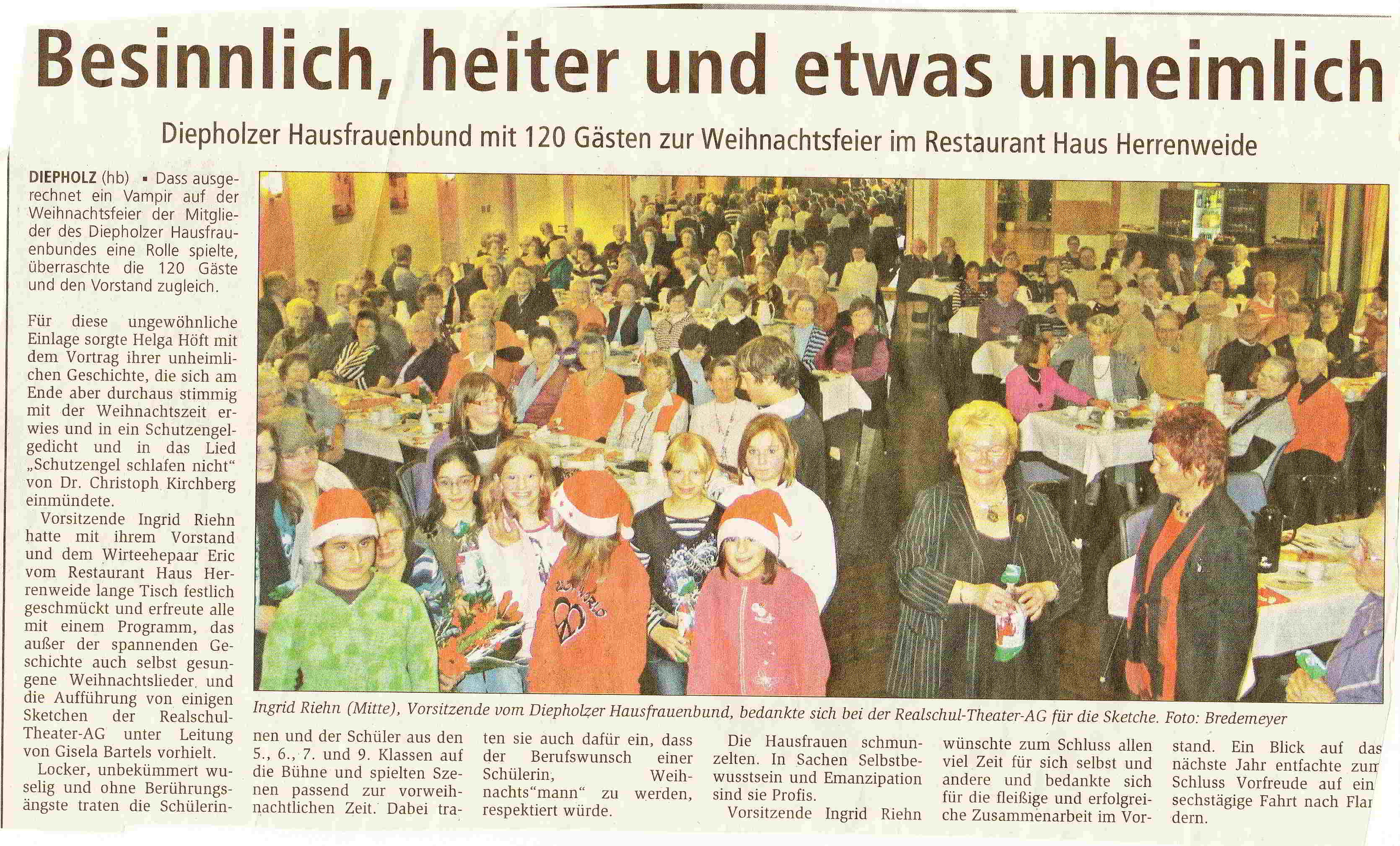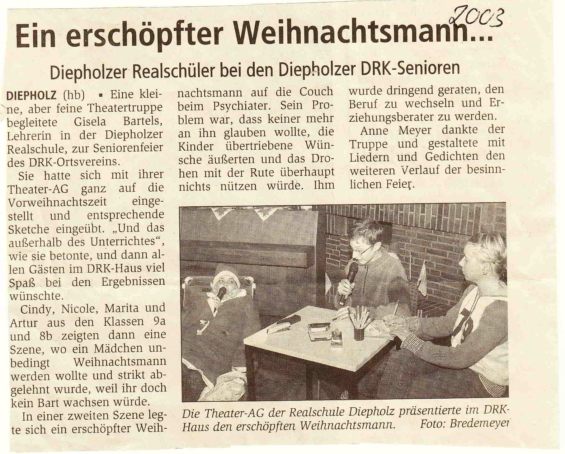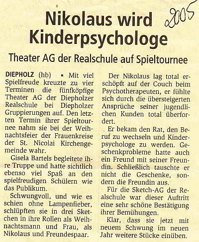 Weihnachten 2010 spielten jüngere und erfahrenere Schüler ein mittlerweile erweitertes Sketchprogramm bei der SG Diepholz, der Rheuma-Liga , beim Seniorennachmittag und im Krankenhaus der Stadt Diepholz.