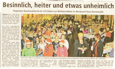 Weihnachten 2009 engagierten wir uns erneut mit bewährten Weihnachtssketchen beim Hausfrauenbund, beim Seniorenkreis der Nikolaikirche und bei der schulischen Weihnachtsfeier.