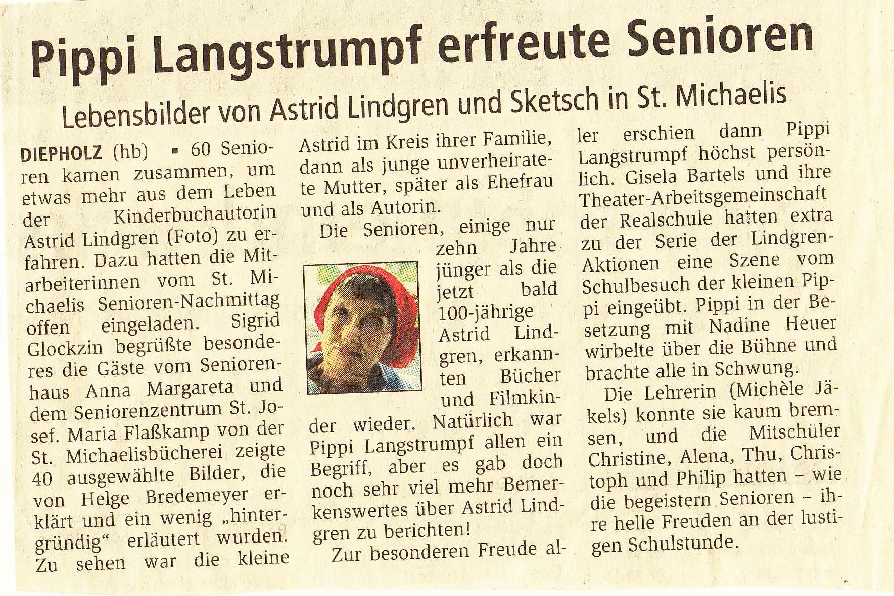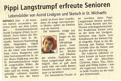 Unser nächstes Projekt war eine Theaterszene, die sich mit „Pippi Langstrumpf“ beschäftigte und die ein Beitrag zu den Feierlichkeiten im Herbst 2007 anlässlich des 100. Geburtstages von Astrid Lindgren war.