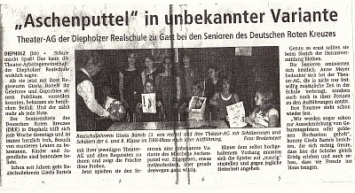 Im Sommer 2008 präsentierten wir im Rahmen der Entlassung der 10. Klassen das Märchen „Aschenputtel“ auf moderne, ungewöhnliche und amüsante Art und Weise.