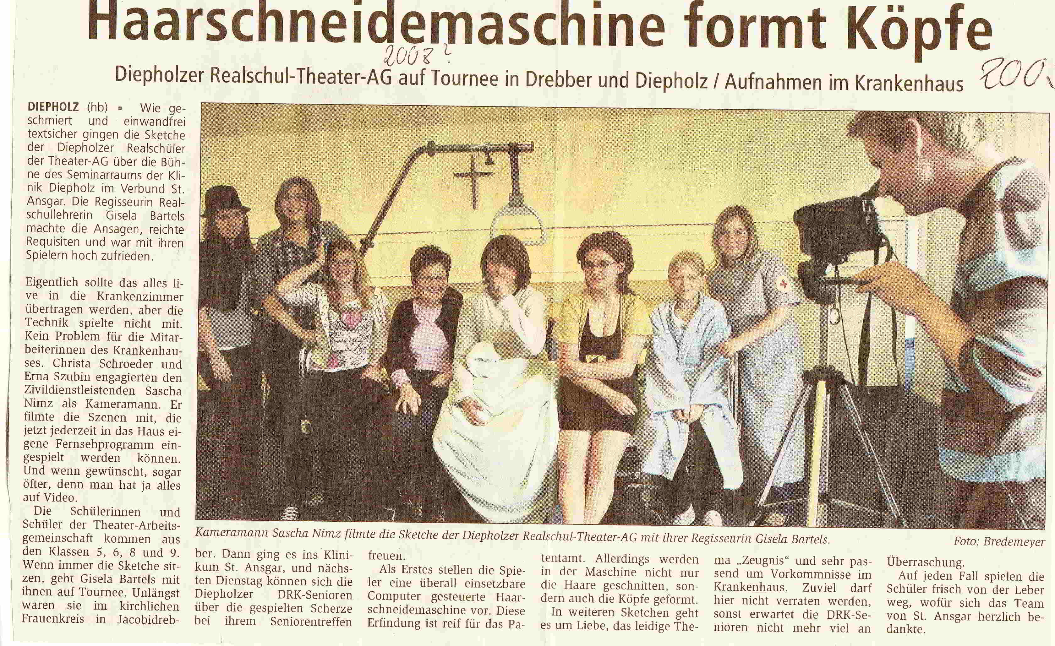 Die nächste Aufgabe war ein Theaterstück, das sich mit dem „Nachwuchs im Jahr 2222″ auf kritische und unterhaltsame Weise beschäftigte. Es kam bei der Entlassung der 10. Klassen 2006 und im Krankenhaus Diepholz zur Aufführung.