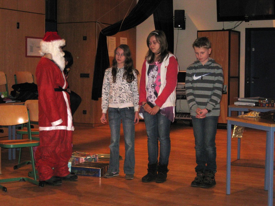 Obwohl aus Zeitmangel nicht alle Lieder und Geschichten gesungen bzw. vorgelesen werden konnten, die zuvor im Rahmen des Musikunterrichts geübt worden waren, war die gemeinsame Weihnachtfeier ein schönes Erlebnis, das im Jahr 2012 unbedingt wiederholt werden sollte.
