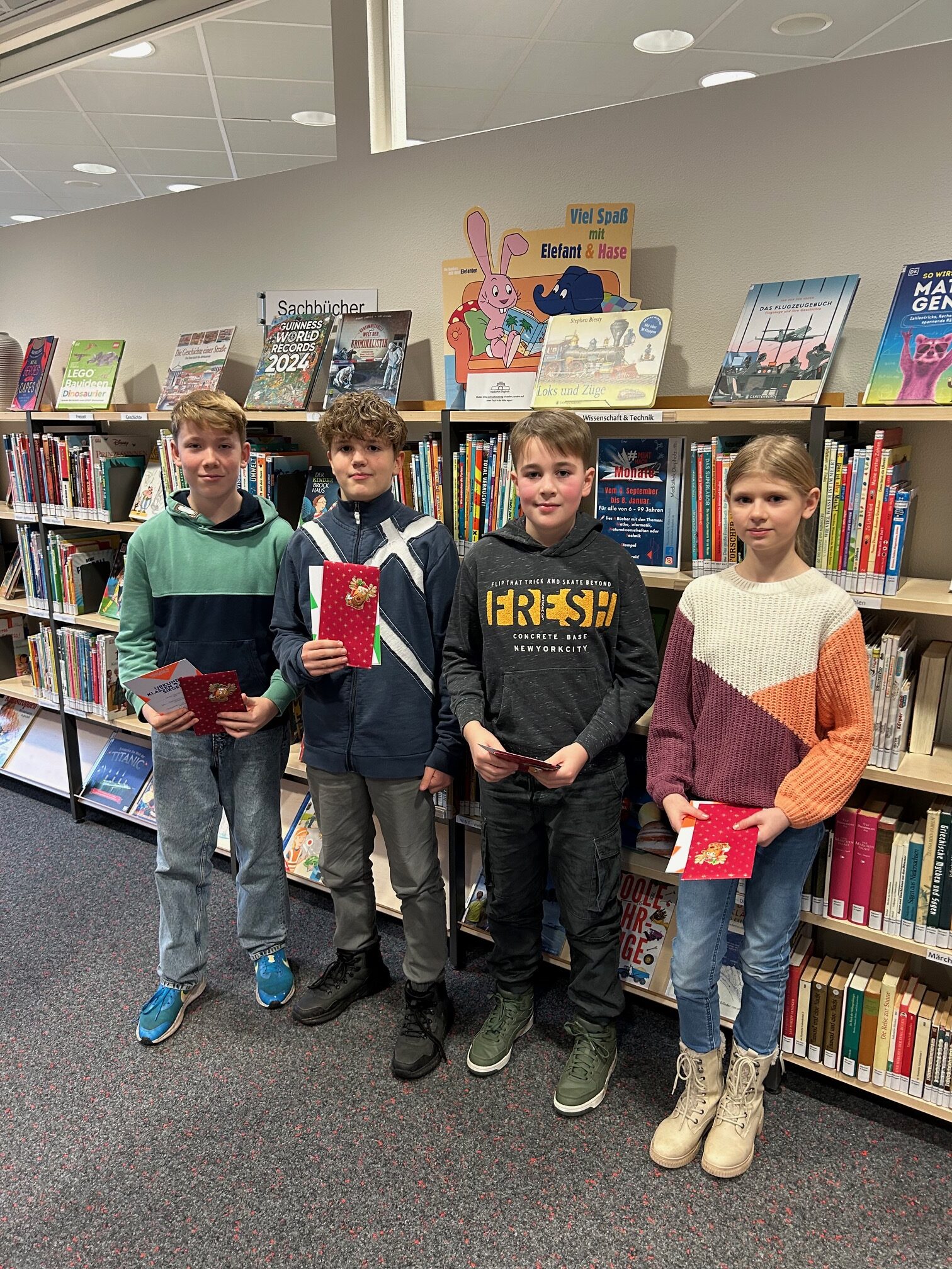 Drei Schüler und eine Schülerin unserer sechsten Klassen fanden sich am Montagmorgen in der Mediothek ein, um das Kind „herauszulesen“, das die Realschule Diepholz im Regionalentscheid vertritt.