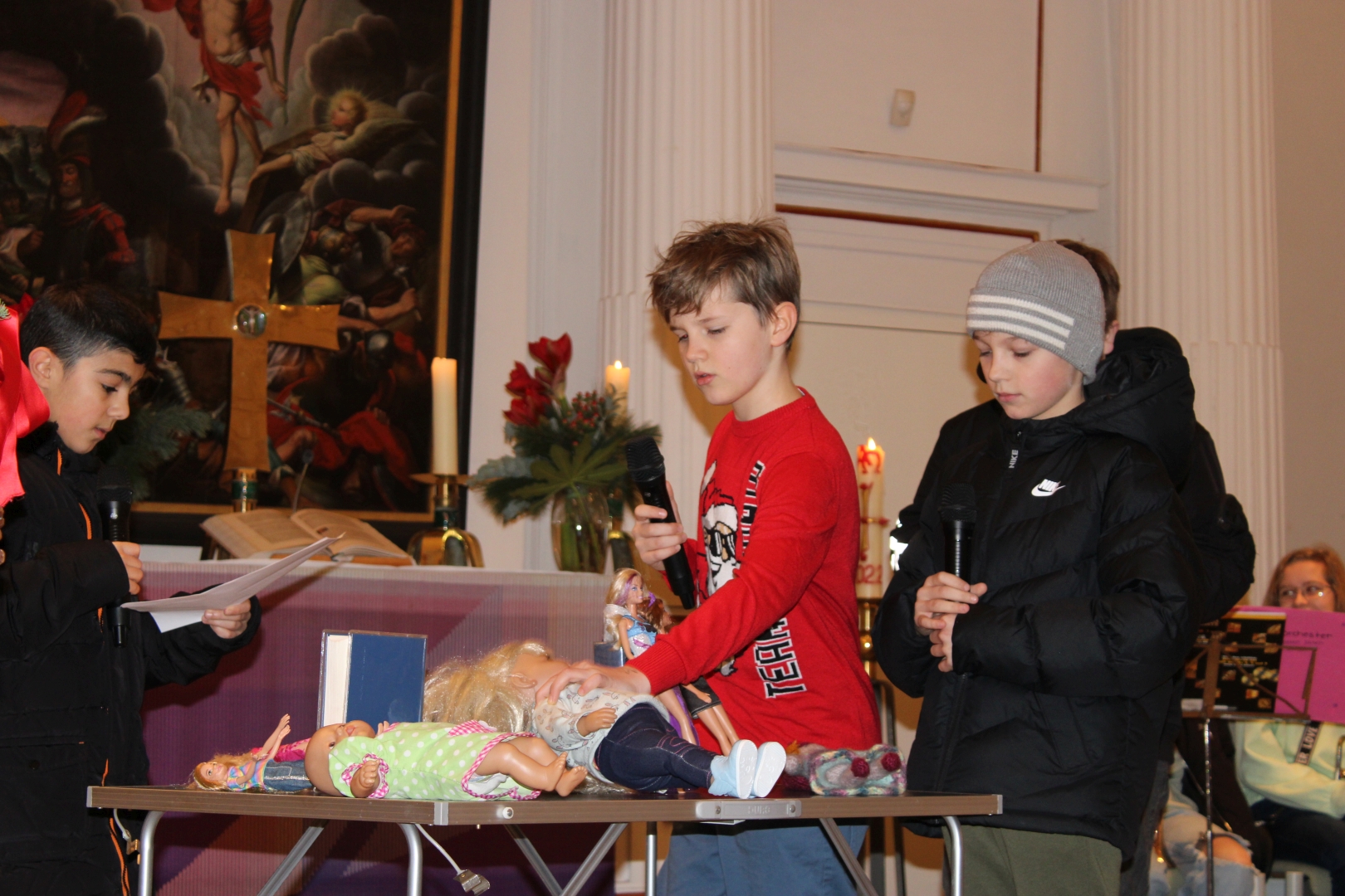 Am Dienstag, den 20.12.2022, machten sich die 5. und 6. Klassen der Diepholzer Realschule auf den Weg in die St.Nicolai-Kirche. Gemeinsam mit ihren Lehrerinnen und Lehrern sowie mit der Unterstützung von der Diakonin Frauke Laging und Sina Bramlage feierten sie einen selbst gestalteten Adventsgottesdienst. Der Gottesdienst stellt den Höhepunkt des konfessionell-kooperativen Religionsunterrichts dar, an dem alle SchülerInnen der 5. und 6. Klassen teilnehmen. Auch die Schüler des Werte-und-Normen-Unterrichts wurden herzlich zur Teilnahme eingeladen. Der Grundgedanke lag dieses Jahr auf unseren Wünschen und Geschenken und der Erkenntnis, dass Zeit und Wertschätzung dabei eine besondere Rolle spielen. So führten SchülerInnen der Klasse 5d ein Theaterstück auf, in dem der Bruder seiner Schwester gerne eine besondere Puppe schenken möchte. Er findet zunächst eine im Laden, kauft sie aber nicht sofort, so dass sie später weg ist. Er entschließt sich, selber eine Puppe zu machen. Die Zeit, die er für das besondere Geschenk seiner Schwester investiert hat, wird von ihr mehr als wertgeschätzt und sie ist überglücklich. Er ist zu einem Licht für sie geworden. Zwischen den einzelnen Szenen gab es Beiträge der Klassen 5b und 6b zu dem, was wir uns wünschen bzw. verschenken möchten. Hier waren neben materiellen Dingen, vor allem aber die ideellen Dinge von Bedeutung und der Gedanke hinter dem Geschenk, einem lieben Menschen eine Freude machen zu wollen.