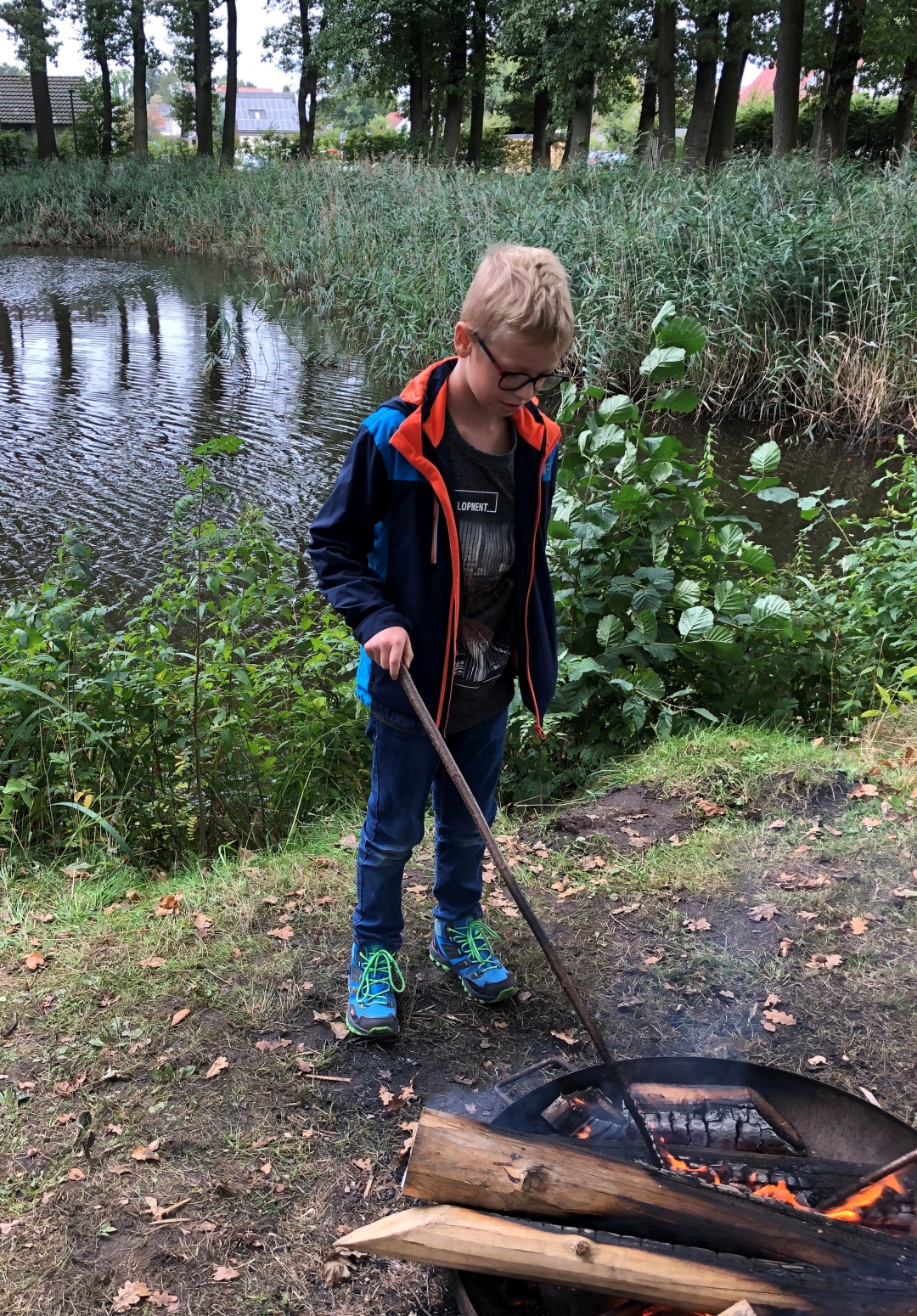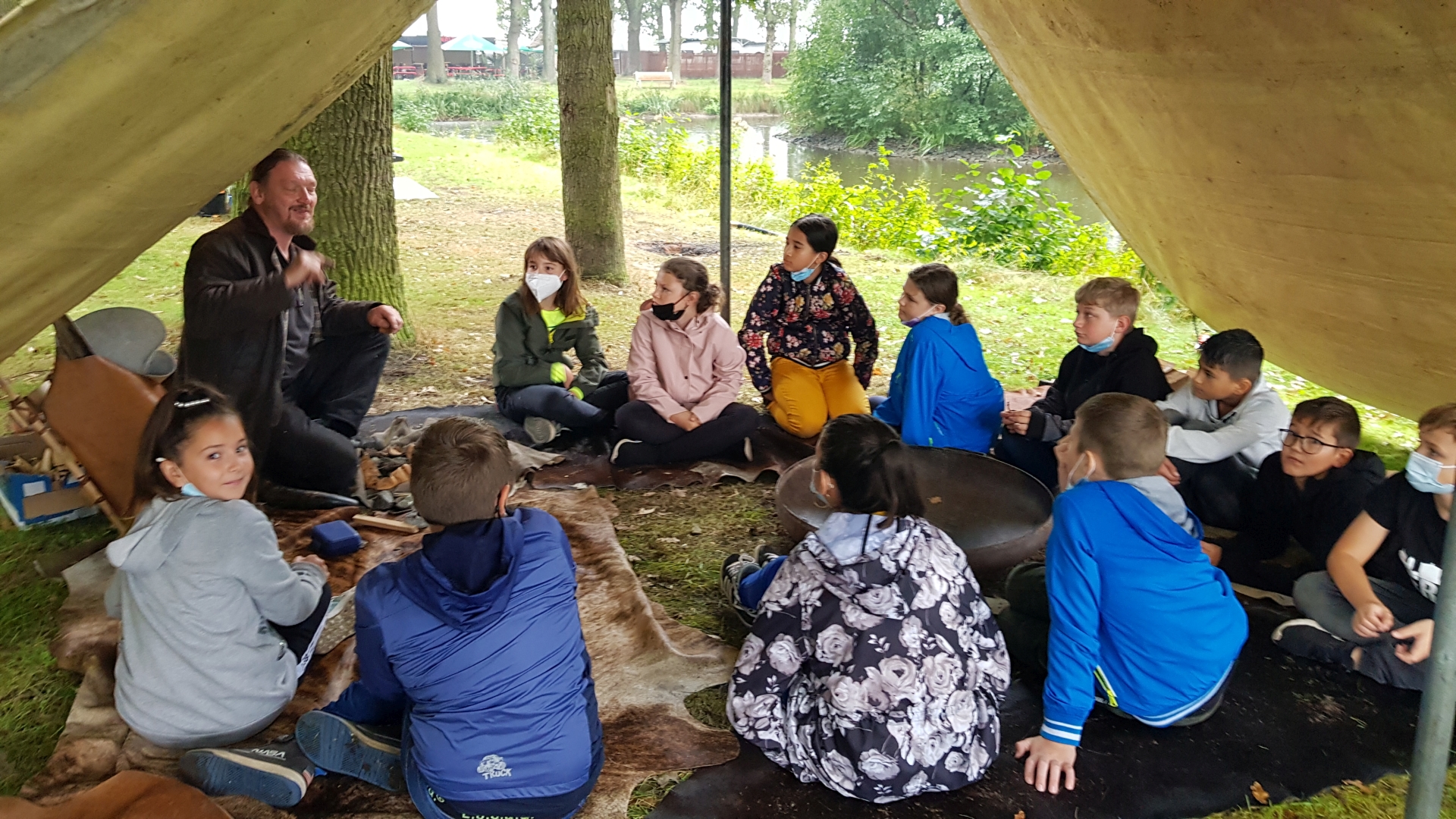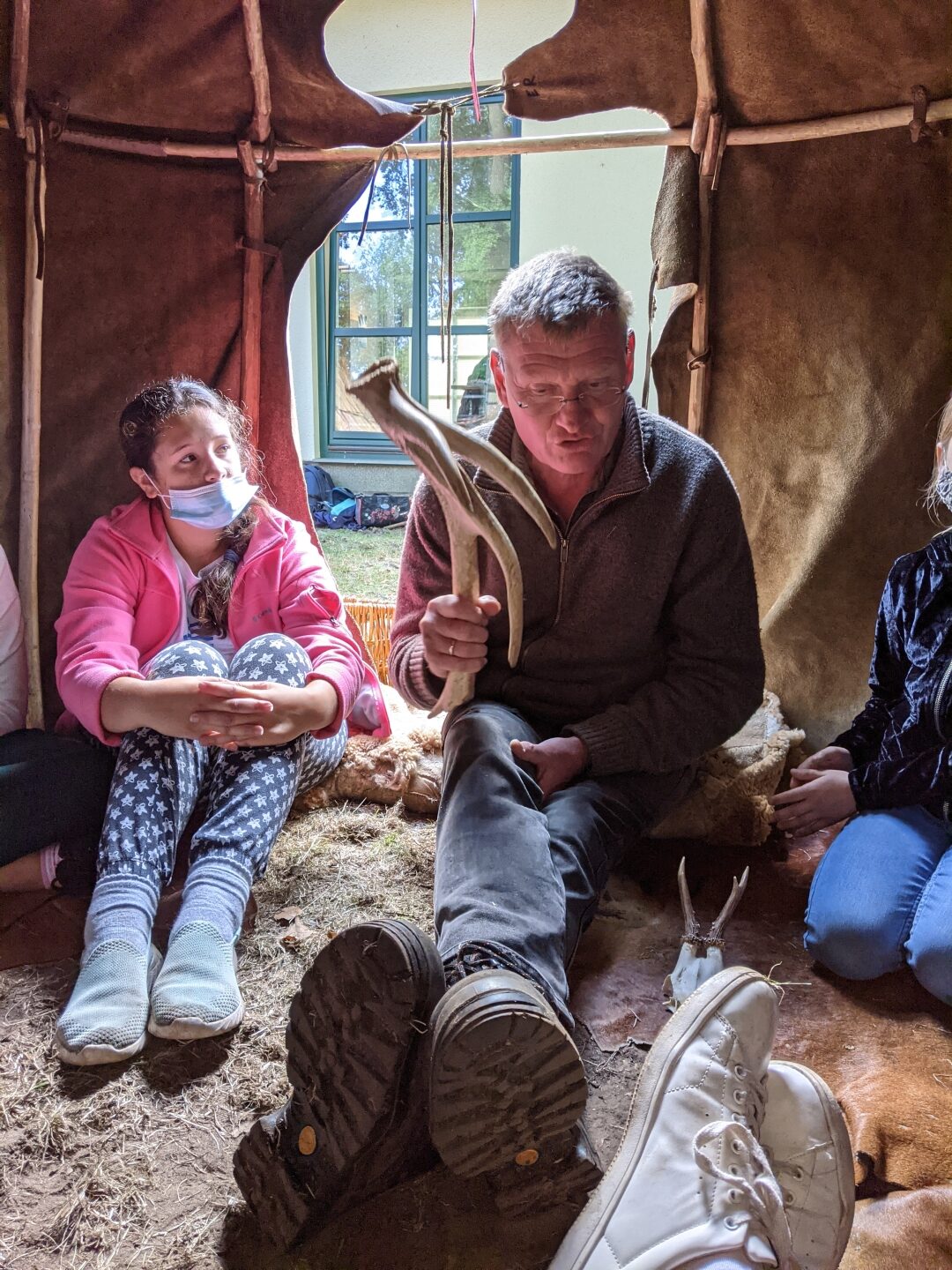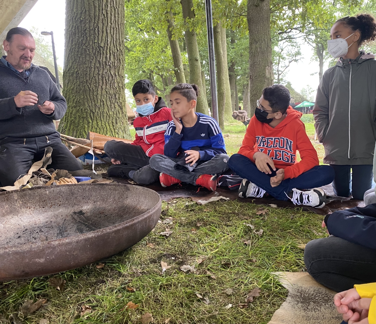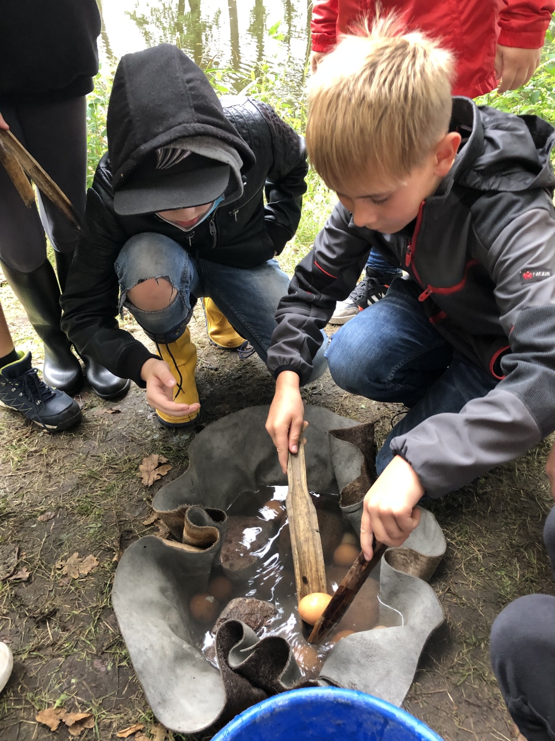 Für die Schüler wurde dank Herrn Dr. Hans Joachim Behnke greifbar, welche Werkzeuge die Menschen in der Steinzeit nutzten, aber auch, wie damals Zelte gebaut wurden. Sie machten wie die Steinzeitmenschen unter Anleitung von Herrn Thorsten Helmerking Feuer. Anschließend erhitzten sie damit Wasser und konnten Eier kochen und diese auch essen. Natürlich mit Salz, das sie zuvor aus Salzwasser gewonnen haben.