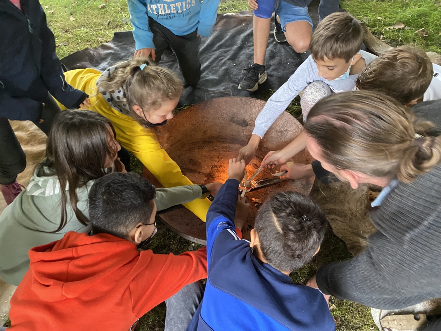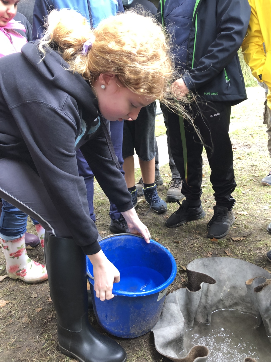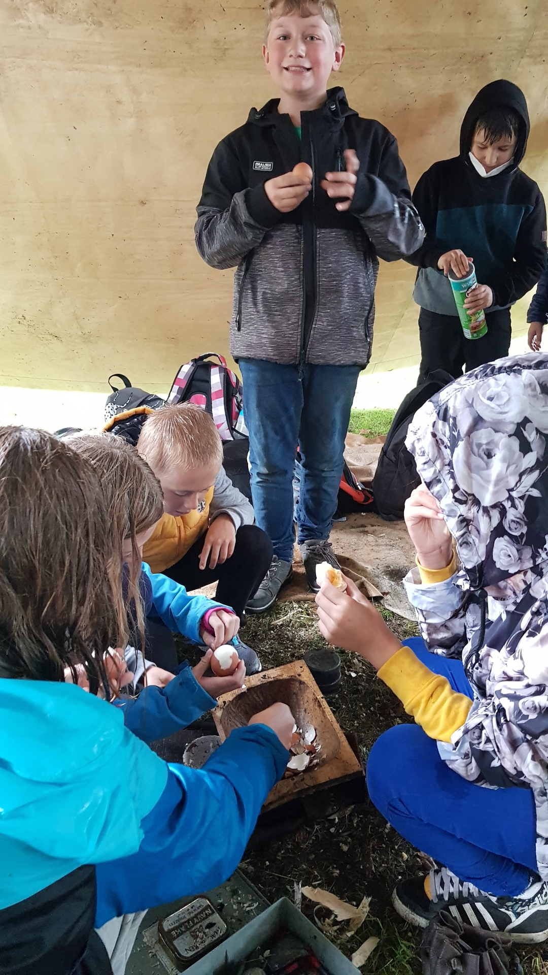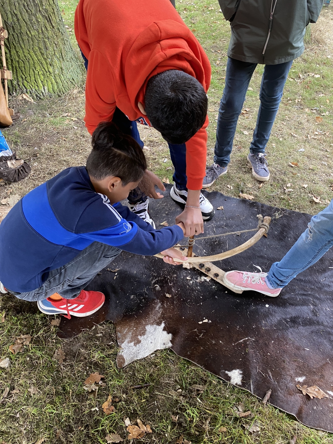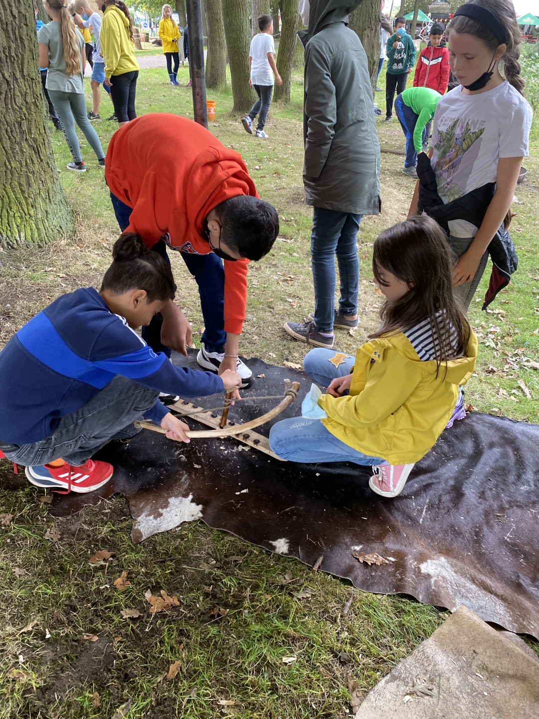 Für die Schüler wurde dank Herrn Dr. Hans Joachim Behnke greifbar, welche Werkzeuge die Menschen in der Steinzeit nutzten, aber auch, wie damals Zelte gebaut wurden. Sie machten wie die Steinzeitmenschen unter Anleitung von Herrn Thorsten Helmerking Feuer. Anschließend erhitzten sie damit Wasser und konnten Eier kochen und diese auch essen. Natürlich mit Salz, das sie zuvor aus Salzwasser gewonnen haben.