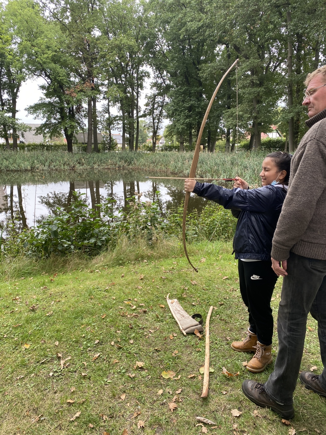 Auch die Steinzeitjagd wurde für die Schüler durch die Nutzung von Pfeil und Bogen auf ein Holzrentier zum Abenteuer.