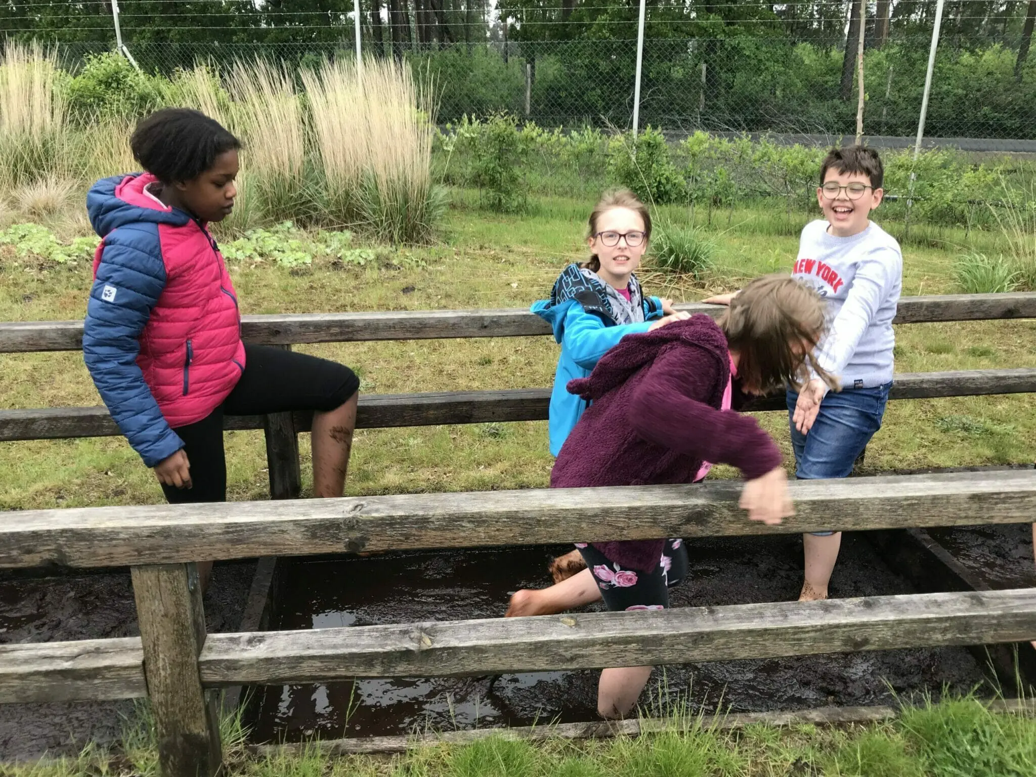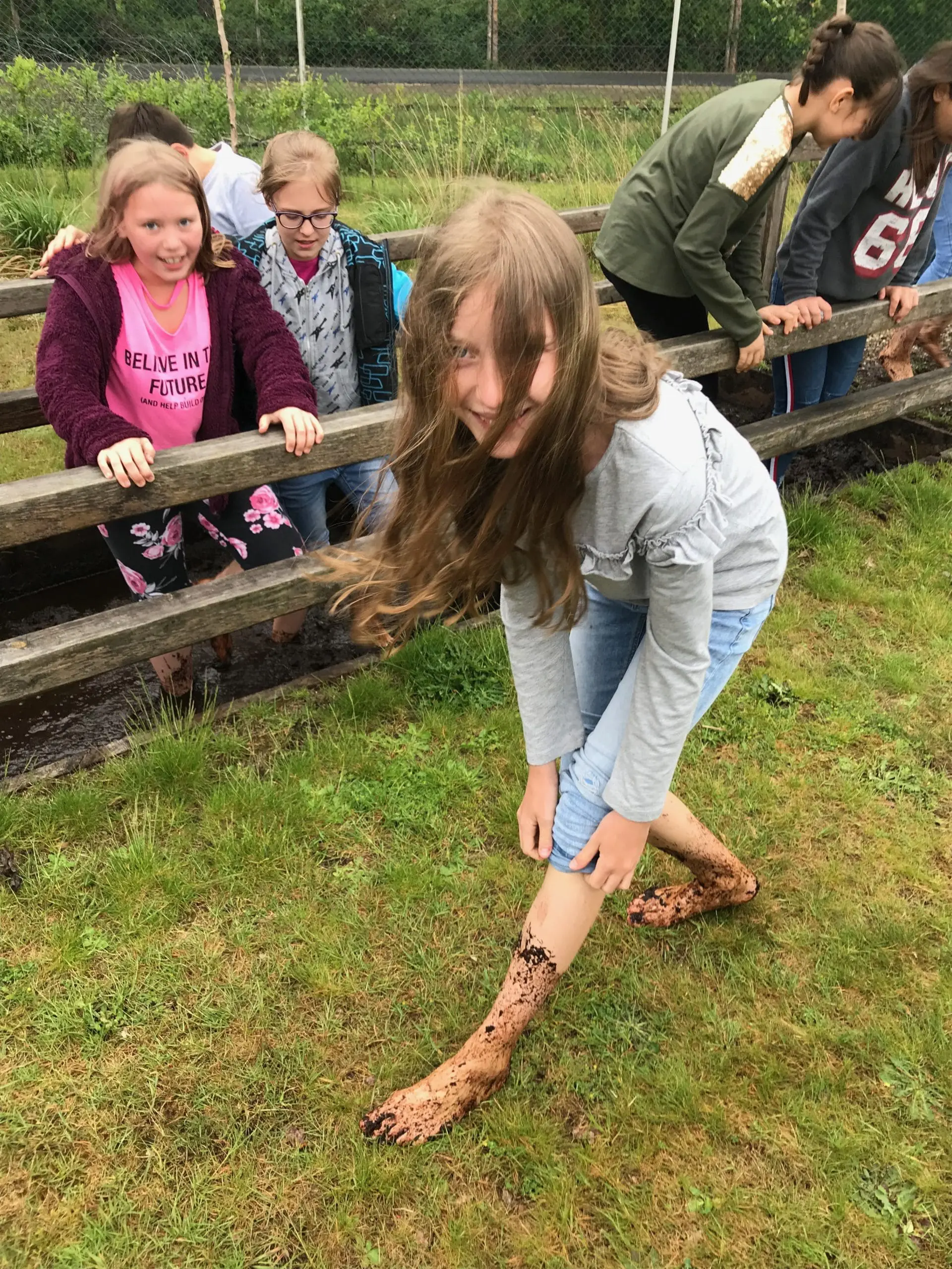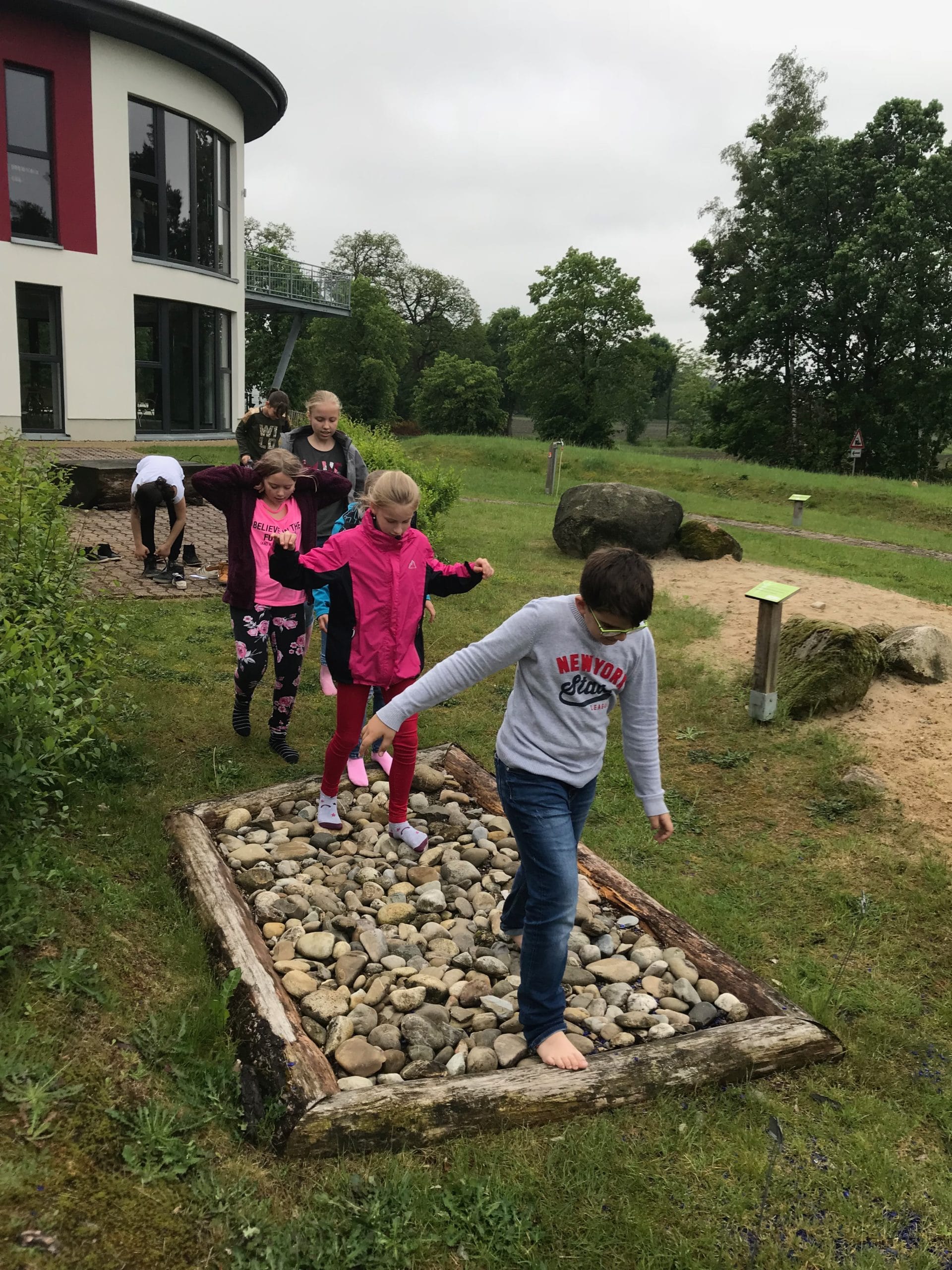 Besonders viel Spaß hatten sie in dem zugehörigen Barfußpark. Dort konnte noch einmal ausprobiert werden, wie es sich anfühlt, mit beiden Beinen im Moorwasser zu waten.