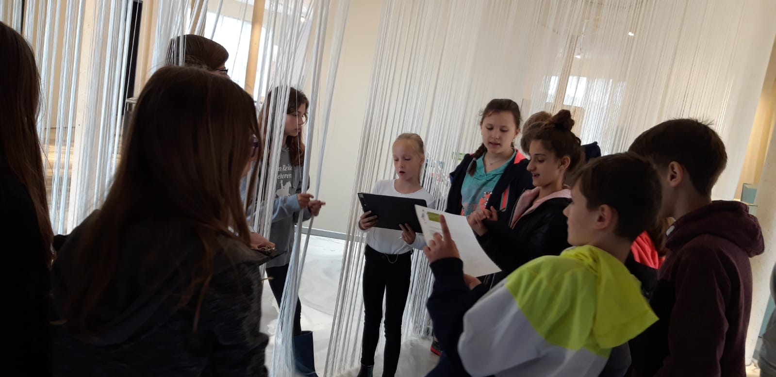 Im Anschluss fuhren sie mit der Moorbahn zu den ‚Moorwelten‘, wo sie zunächst einen Film über die Besonderheiten des Moors sahen und sich dann mittels eines Fragebogens in dem interaktiven Ausstellungsbereich weiterbildeten.