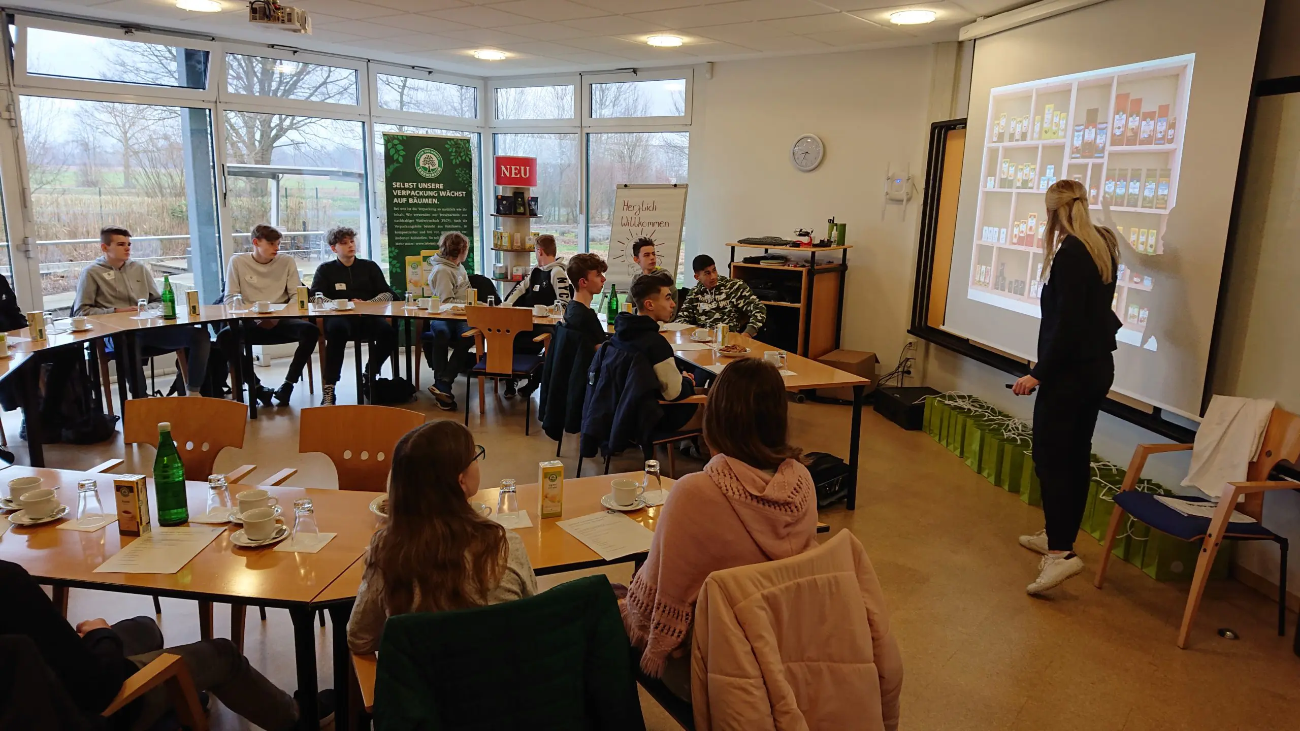 Im Anschluss an den Workshop besuchten die Schüler dann die Firma „Ulrich Walter GmbH“ in Diepholz, Einheimischen besser bekannt unter dem Namen „Lebensbaum“. Nachhaltigkeit bei Lebensbaum – davon konnten sich die Schüler während einer Betriebsbesichtigung überzeugen.