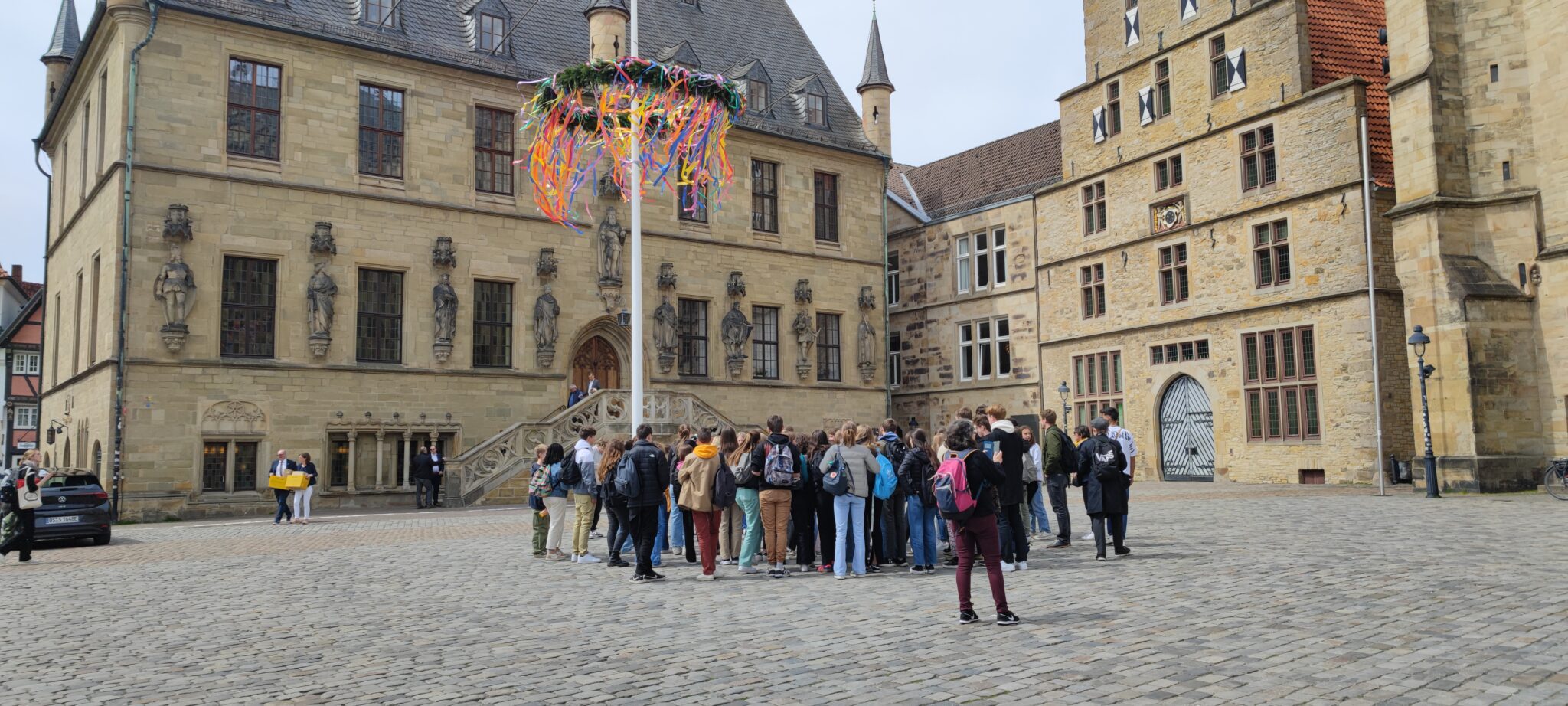 Am Donnerstag unternahmen wir eine Tagestour zunächst nach Kalkriese, wo wir über die dort stattgefundene Varusschlacht informiert wurden, dann ging es weiter nach Osnabrück. Nach einem gemeinsamen Mittagessen in dem Restaurant „Rampendahl“ und einer kleinen Stadt-Rallye hatten wir noch Zeit, durch die Geschäfte zu ziehen, zu shoppen und Eis zu essen.