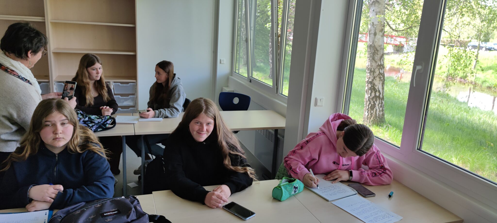 Der Mittwoch gestaltete sich als speziell für uns ausgerichteter Schultag. Neben chemischen Experimenten, einem Projekt mit dem 3D-Drucker und Theater präsentierten wir in einem Kurzvortrag, der nicht in unserer Muttersprache gehalten werden sollte, unsere kreativ gestalteten Fotos des gestrigen Stadtrundgangs. Nach einer Mittagspause trafen wir uns in der Sporthalle, in der wir entweder Vörkerball, Volleyball oder Badminton spielten.