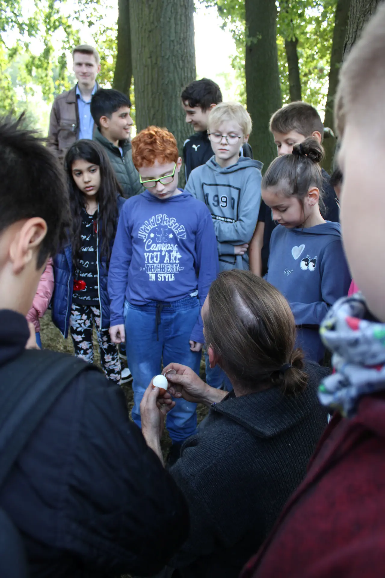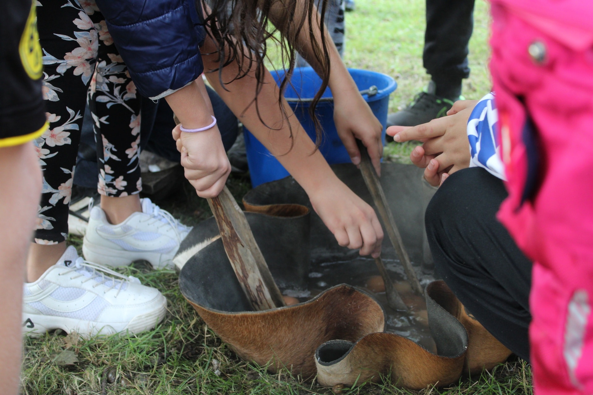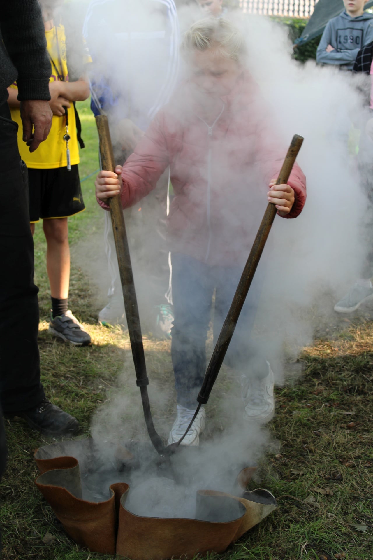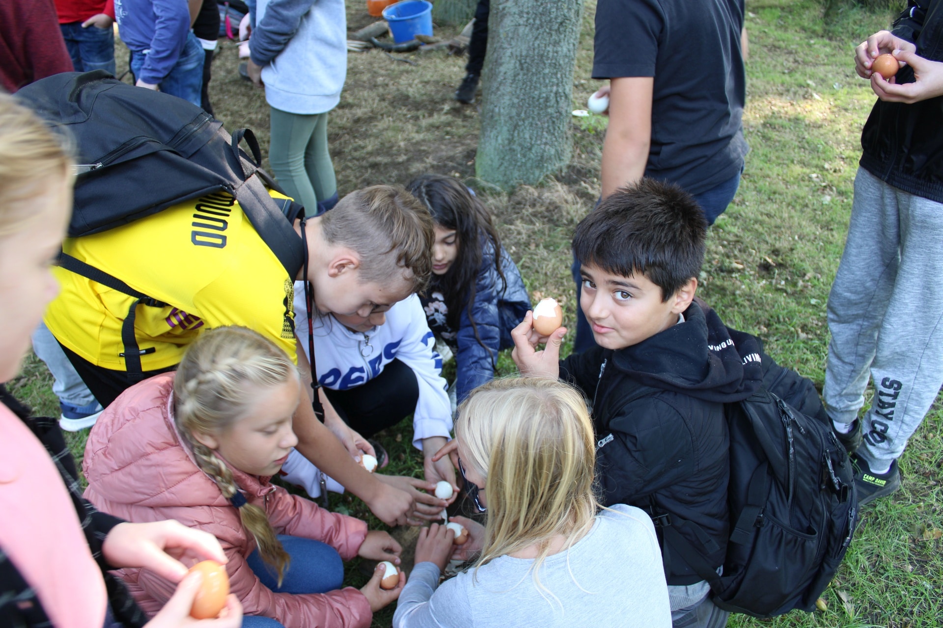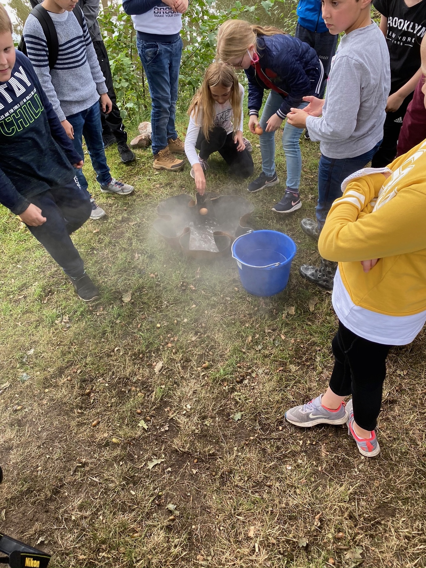Abschließend wurde mit dem selbstgemachten Feuer Wasser erhitzt, darin Eier gekocht und Salz von Wasser getrennt. Natürlich durften die Eier dann auch von den Schülern verspeist werden.