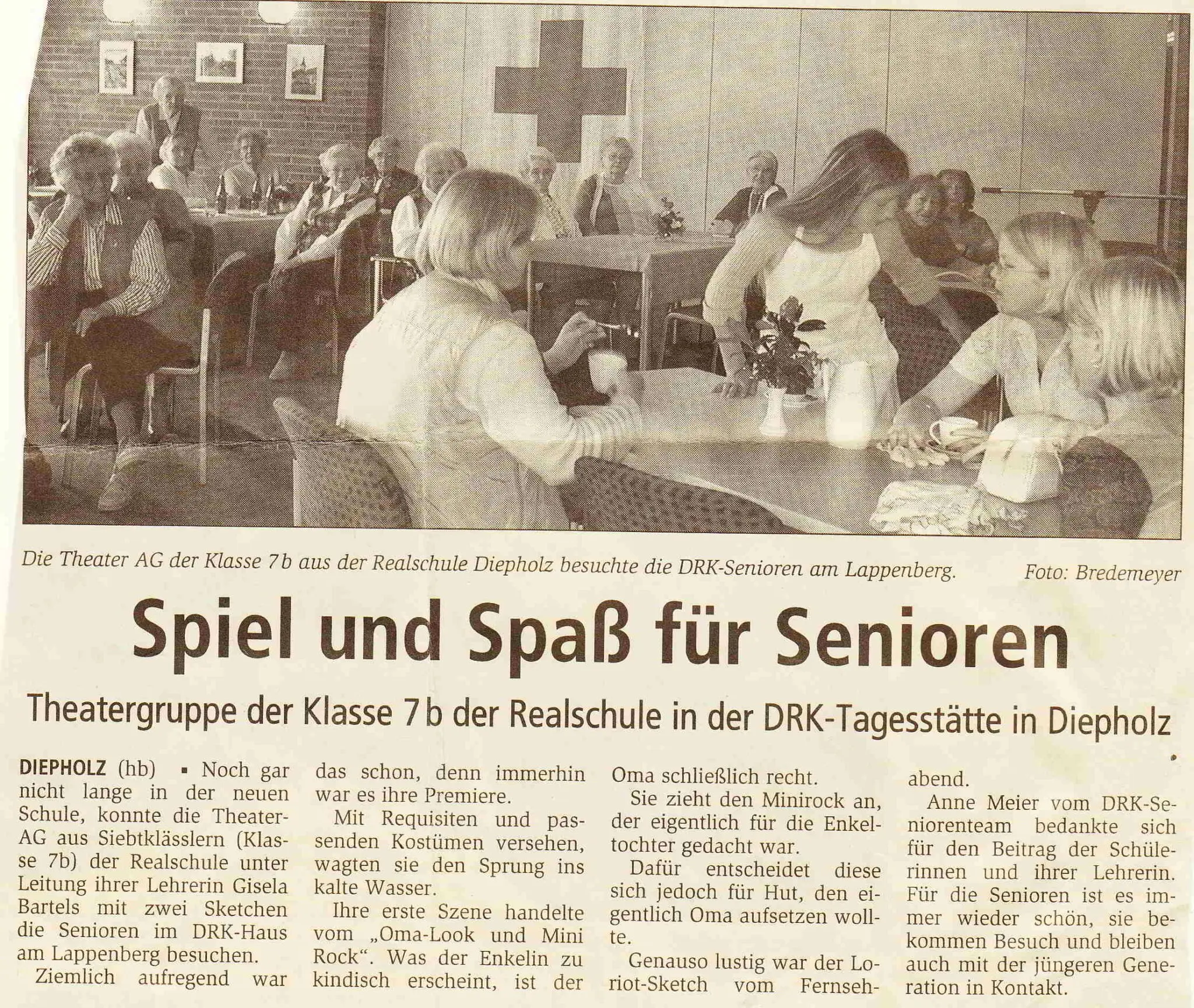 Mit Schülern der neuen siebten Klassen führten wir „Oma-Look und Mini-Rock“ und „Fernsehabend“ im Herbst bei Seniorennachmittagen des DRK in Rehden und Diepholz auf.