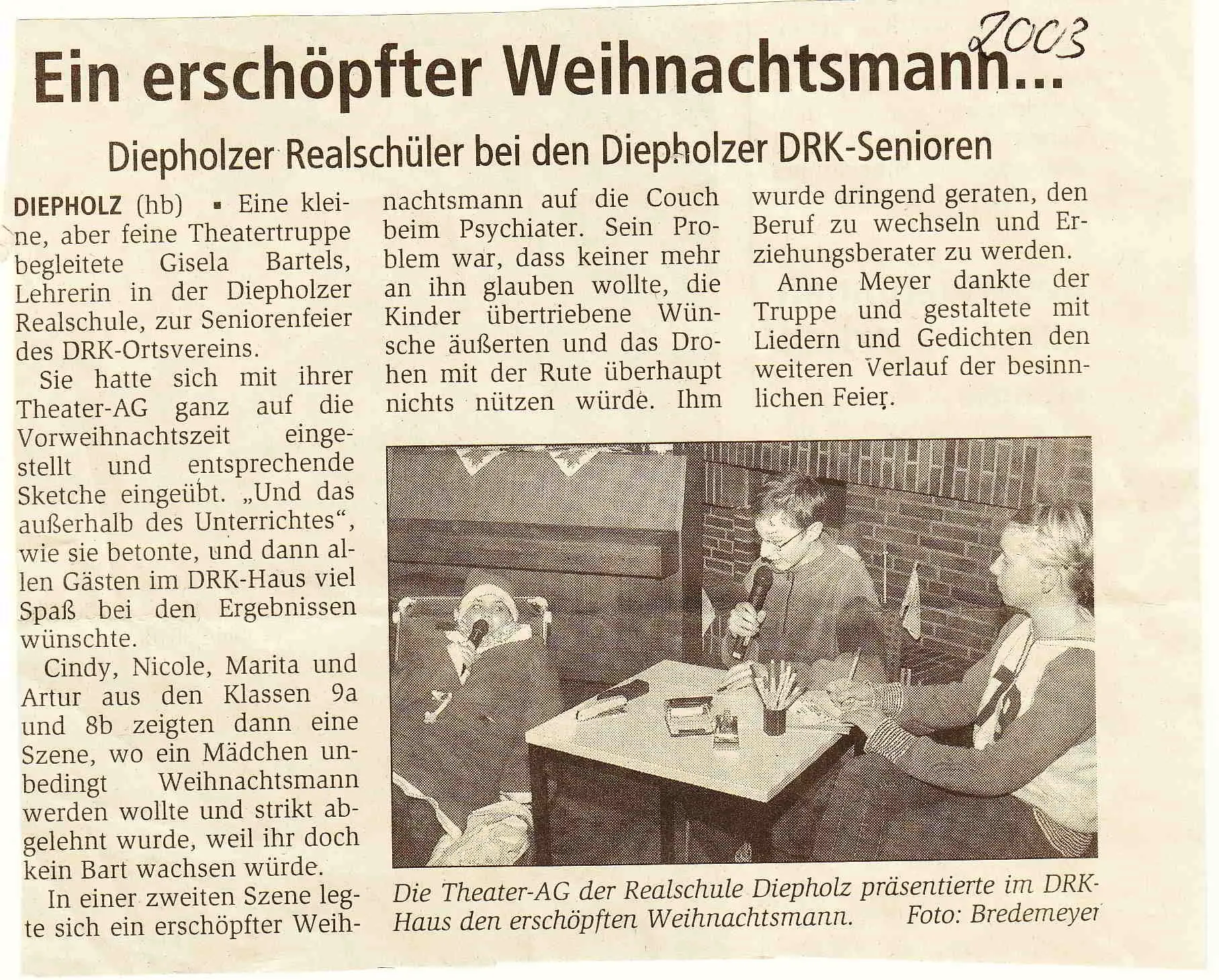Im Dezember desselben Jahres besuchten wir die Weihnachtsfeiern des DRK Diepholz und der Behindertensportgruppe mit „Weihnachtsmann und Weihnachtsfrau“ und „Nikolausprobleme“.