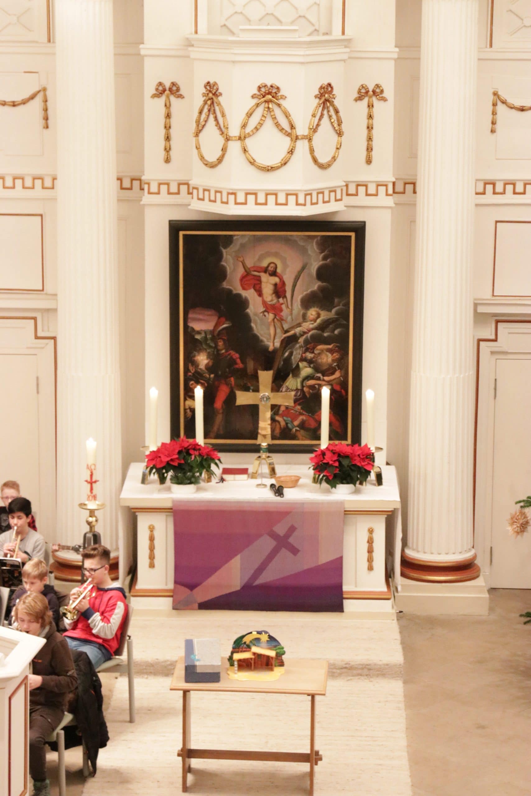 Grundlage für die Gestaltung des diesjährigen Gottesdienstes war der Psalm 91, in dem davon gesprochen wird, dass Engel als Boten Gottes uns Menschen auf unseren Wegen behüten. Dieses wurde gekonnt im kleinen Theaterstück „Daniel und der Weihnachtsengel“ veranschaulicht.