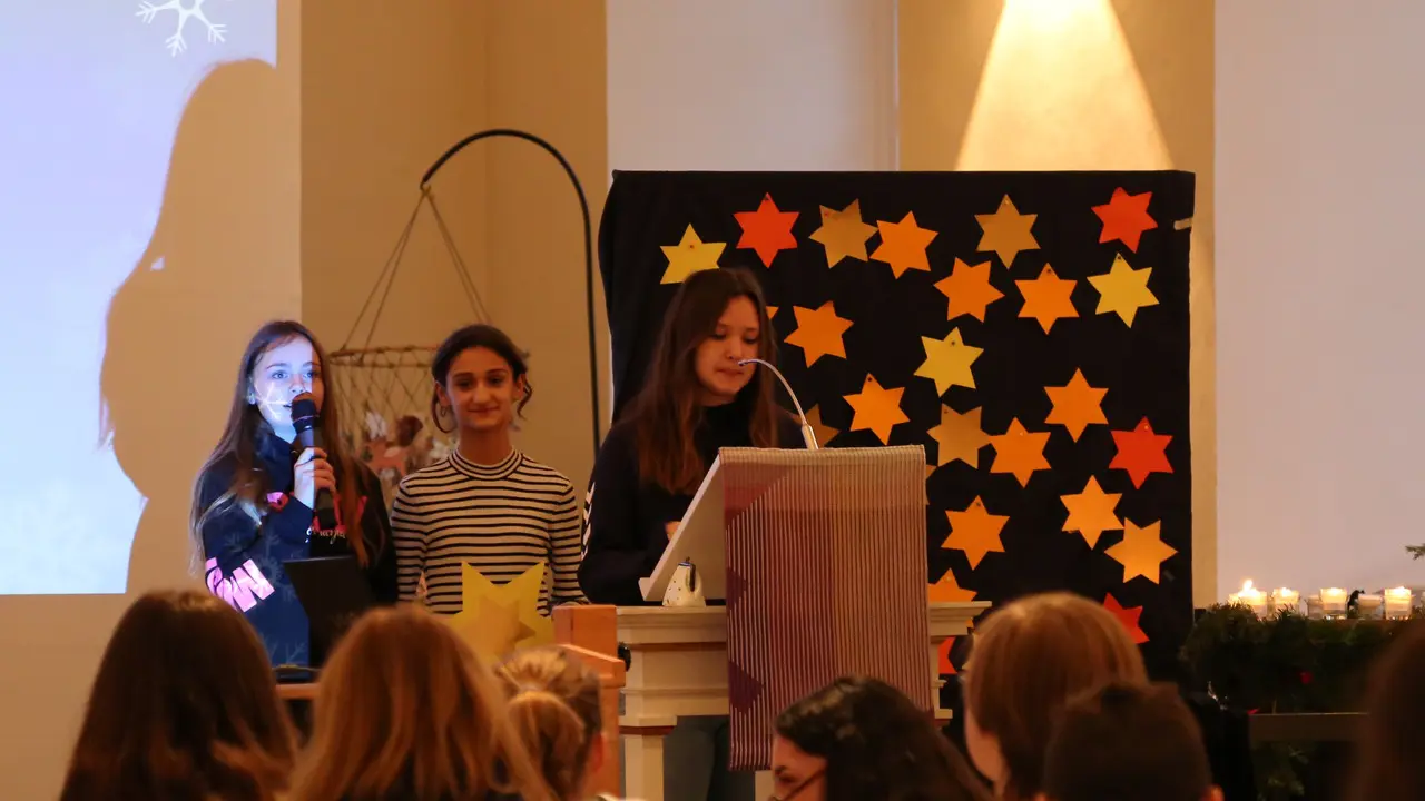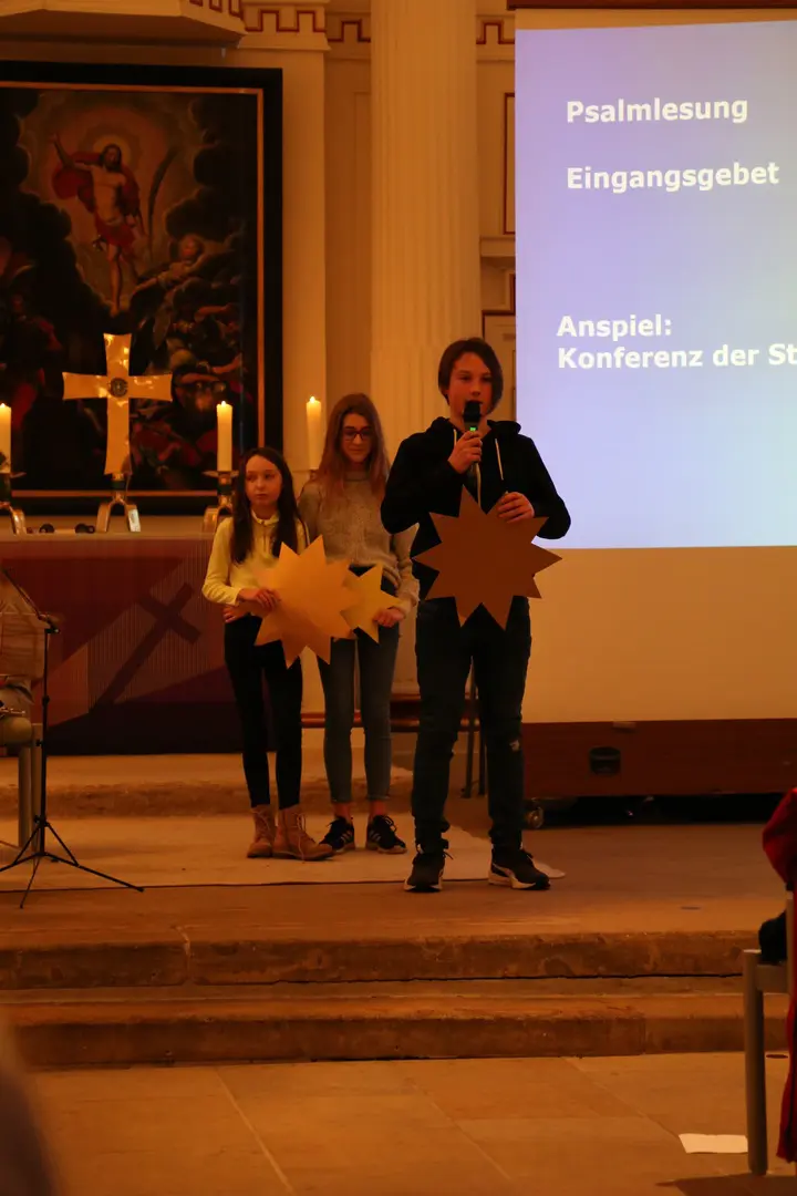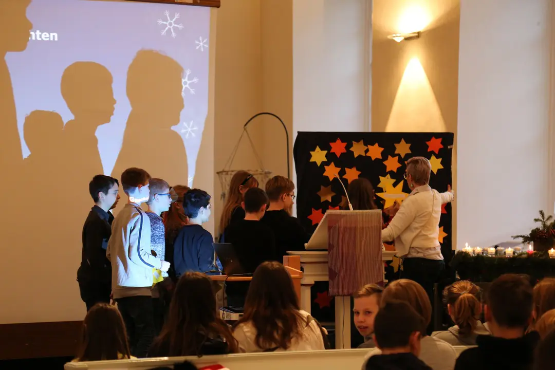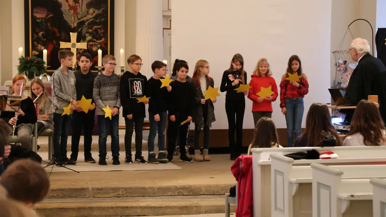 Unter dem Motto „Wir brauchen einen Stern“ machten sich die 5. und 6. Klassen der Diepholzer Realschule am Donnerstag, den 19.12.2019, auf den Weg in die St.Nicolai-Kirche. Gemeinsam mit ihren Lehrern sowie mit der Unterstützung von Pastor Lutz Korn und der Diakonin Frauke Laging feierten sie einen selbst gestalteten Adventsgottesdienst. Der Gottesdienst stellt den Höhepunkt des konfessionell-kooperativen Religionsunterrichts dar, an dem alle Schüler und Schülerinnen der 5. und 6. Klassen teilnehmen. Auch die Schüler des Werte-und-Normen-Unterrichts wurden herzlich zur Teilnahme eingeladen. Grundlage für den diesjährigen Gottesdienst war ein Psalm, der von Schülern der Klasse 6b erarbeitet wurde. Sie gingen im Unterricht der Frage nach, wo es dunkel in unserer Welt ist und wo wir Hoffnung bringende funkelnde Sterne finden können. Die 5d trug dazu ein Gebet vor. Das Anspiel „Konferenz der Sterne“, dargestellt von der Klasse 6a, fasste zusammen, dass wir dort Sterne im Alltag finden wo man zusammenhält, sich gegenseitig hilft und füreinander da ist. Mädchen und Jungen der Klassen 5a, 5b und 5c hatten im Unterricht überlegt, inwieweit sie selber schon einmal ein Stern für andere waren bzw. ein anderer ein Stern für sie war. Dazu hatten sie kleine Geschichten geschrieben, die im Gottesdienst vorgetragen wurden: Da ging es u.a. um Omas, die sich kümmern, um Hilfe für kranke Familienangehörige und um Freunde und Familie, die zur rechten Zeit da sind. In den Fürbitten baten die Schüler und Schülerinnen der 6c darum, dass Licht zu den Menschen kommen soll, denen es nicht so gut geht, die unter Krieg, Armut, Krankheit, Trauer und Einsamkeit leiden. Auch Ihnen soll ein Stern aufgehen, so dass sie die Hoffnung der Weihnachtsbotschaft erfahren. Im Musikunterricht wurden verschiedene Weihnachtslieder einstudiert, die dann auch voller Inbrunst mitgesungen wurden. Die Bläserklasse, unter Leitung von Herrn Klöpzig, begleitete die Gemeinde gekonnt. Zum Schluss bekamen alle Anwesenden einen Stern geschenkt, der sie daran erinnern soll, dass jeder selber ein Stern für andere sein kann, dass man aber auch in seinem Leben helfenden „Sternen“ begegnen kann und es Sternstunden für jeden gibt. Die Lehrkräfte aus dem Fachbereich Religion danken besonders dem Fachbereich Werken und dem Fachbereich Musik der Realschule, sowie Pastor Lutz Korn und der Diakonin Frauke Laging für die gelungene Zusammenarbeit.