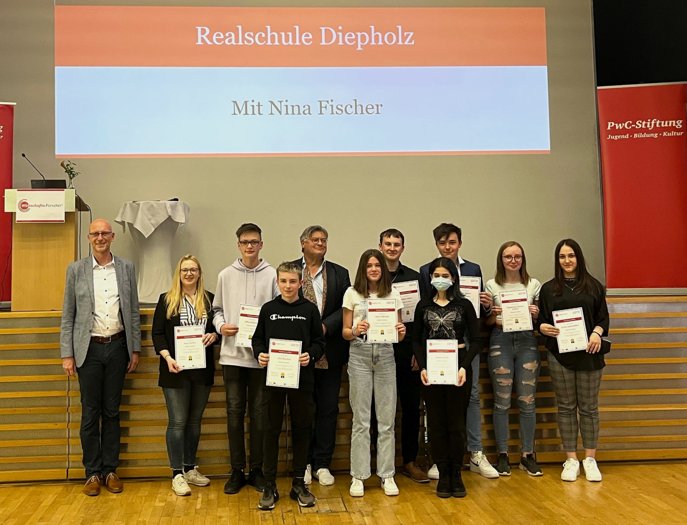 Am 05. und 06. Mai fand nach drei Jahren coronabedingtem Ausfall der Jugendkongress der Wirtschafts.Forscher! der pwc-Stiftung wieder in Frankfurt am Main statt. Der WPK Wirtschaft der Realschule Diepholz entsandte acht ihrer Jungforscher nach Hessen, um die Projektergebnisse des Wirtschaftsethikkurses zu präsentieren.