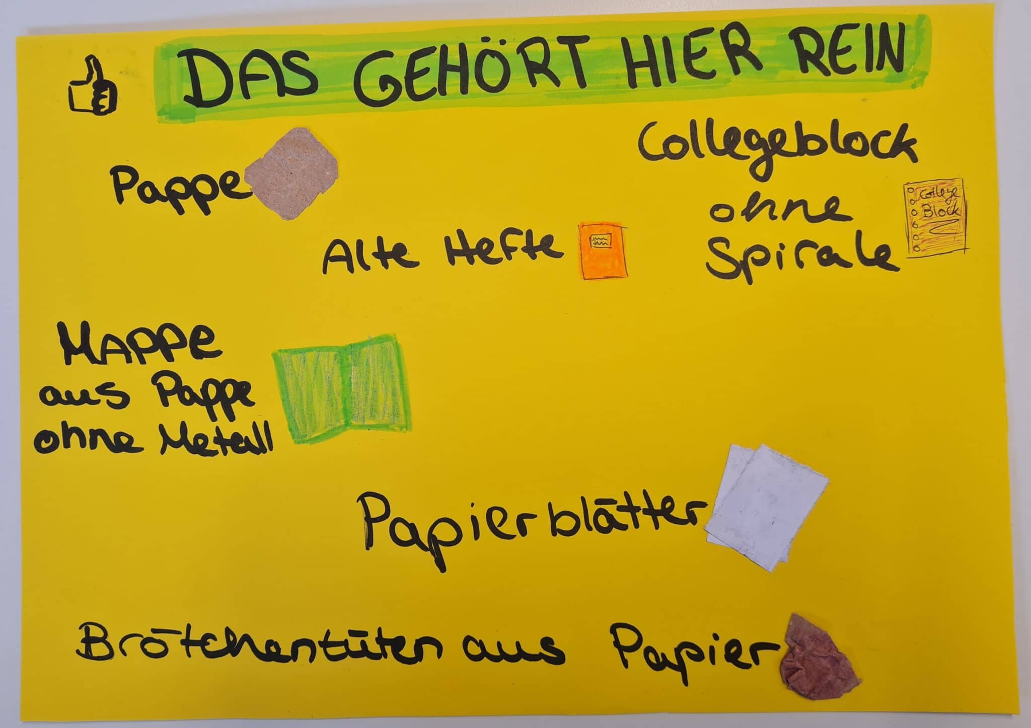 Die Präsentation wurde von den Klassenlehrkräften im Unterricht abgespielt, sodass noch einmal über das richtige Trennen des Mülls im Klassenraum informiert wurde.